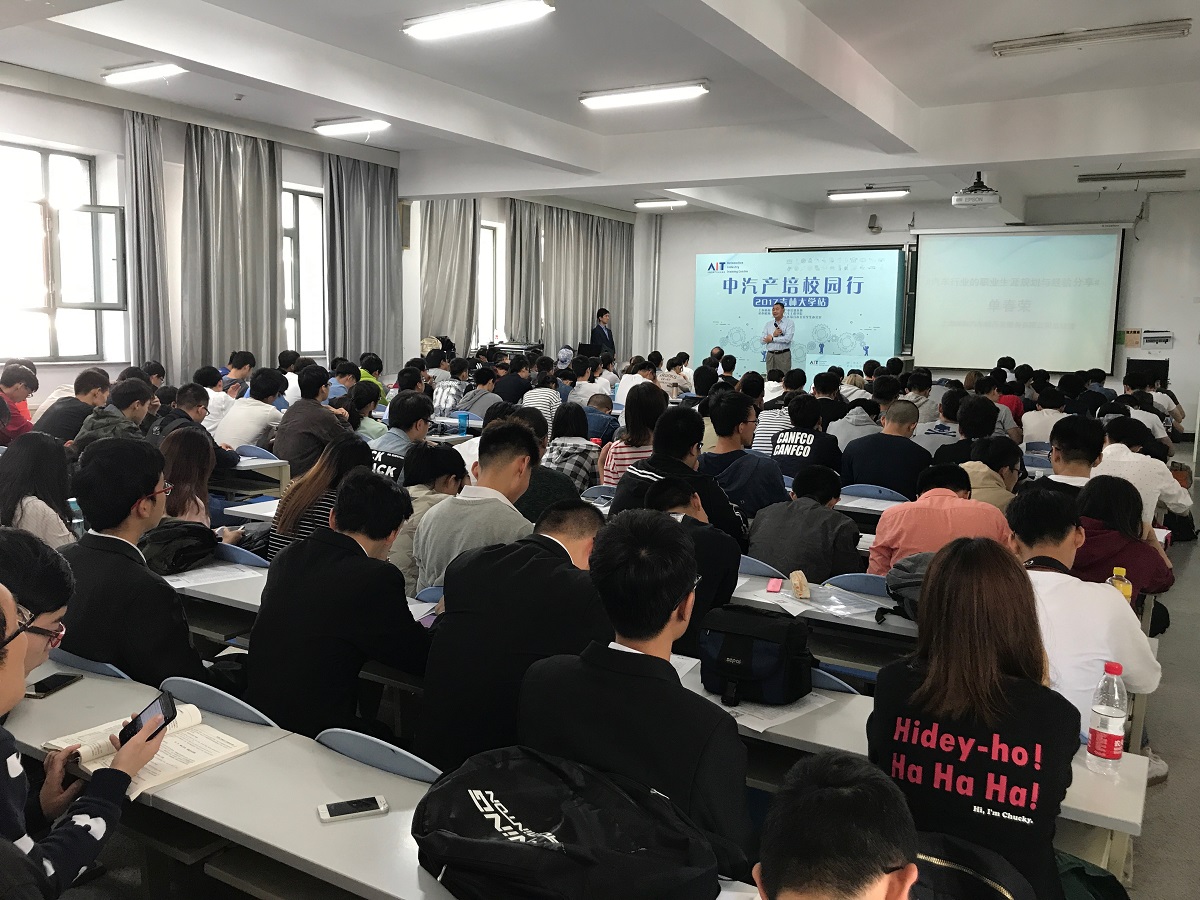 为有志于汽车事业的大学生创造宝贵机会,面对面聆听行业前辈的智慧分享,明确志向,精进层次,感悟生涯。9月20日下午,黑料正能量 在南岭校区逸夫教育大楼B114教室举办了“2017中汽产培校园行”活动。上海国际汽车城开发服务有限公司总经理单春荣,中国汽车产业培训基地主任、教授级高级工程师浦维达,中国汽车产业培训基地顾问、原同济大学教授傅立志,黑料正能量 党委副书记胡忠巍,东区综合办学生办公室教育科科长柴媛参加了此次活动。