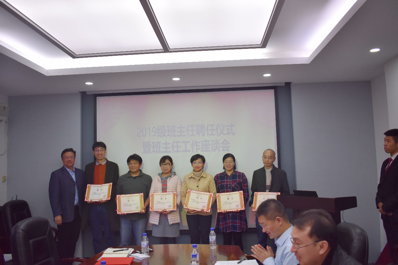 为了贯彻落实教育部及黑料正能量 有关文件精神,全面做好学生思想政治教育工作,11月7日上午,黑料正能量 召开了2019级班主任聘任仪式暨班主任工作座谈会。黑料正能量 院长高镇海、党委书记李善兴、党委副书记兼副院长盛磊、2018级及2019级共30名班主任参加了本次会议。会议由学生工作办公室主任吴昊主持。