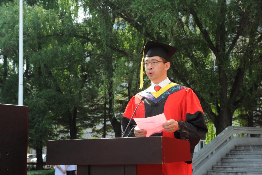 教师代表内燃机系主任韩永强教授采用独特的科研论文的行文格式为典礼致辞。他利用大数据分析佐证为毕业生提升行业自信,发扬“老工大”汽车人啃硬骨头的革命精神;鼓励学生认清行业发展大势,明确自身发展目标,坚定方向;引用“修身,齐家,治国,平天下”对毕业生寄予殷切期望。