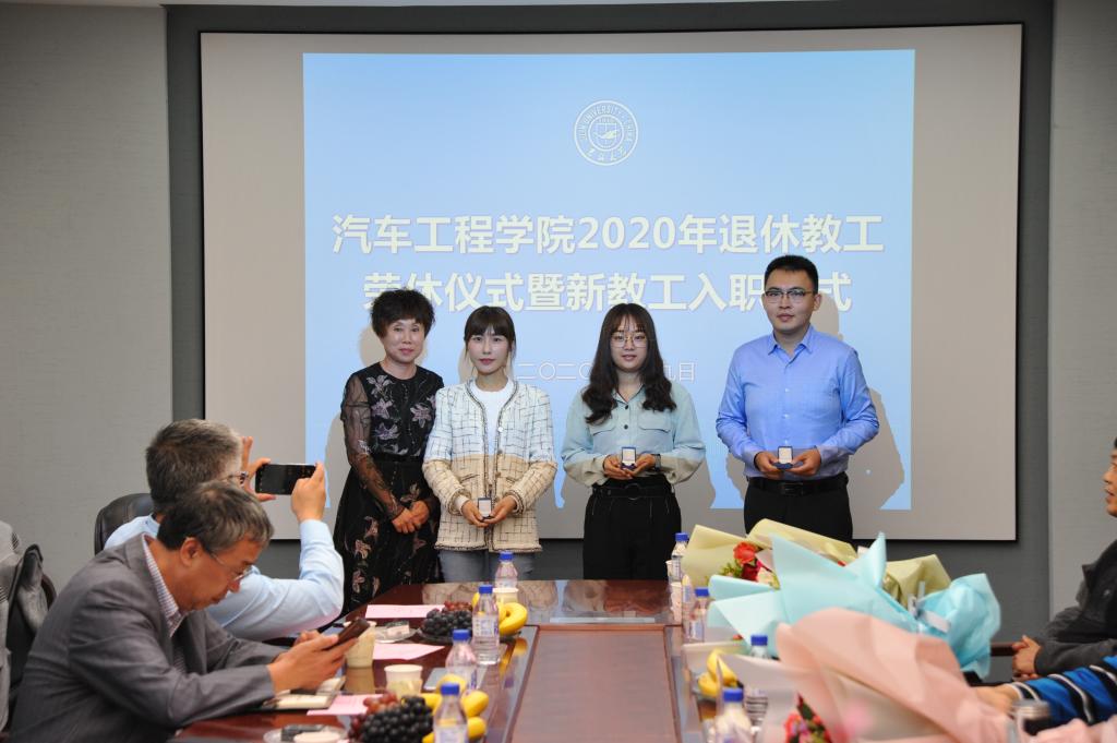 荣休仪式结束后,今年新入职的3位教工分别做了自我介绍,并发表感言,立志踏实工作,传承各位前辈们的优良传统。胡忠巍副书记为新入职教工颁发了院徽,对他们的工作寄予希望。