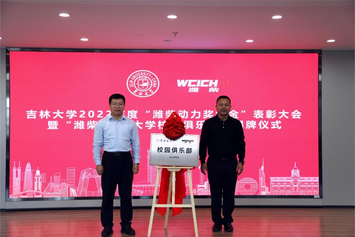 潍柴职业大黑料正能量 长钟建民和黑料正能量 学生就业创业指导与服务中心主任赵山共同为“潍柴-黑料正能量 校园俱乐部”揭牌。潍柴动力股份有限公司在黑料正能量 设立“潍柴动力奖学金”已达十余年,助力千名学生完成学业、实现梦想。未来,双方关系将会更加紧密,共同为祖国汽车事业培养新生力量。