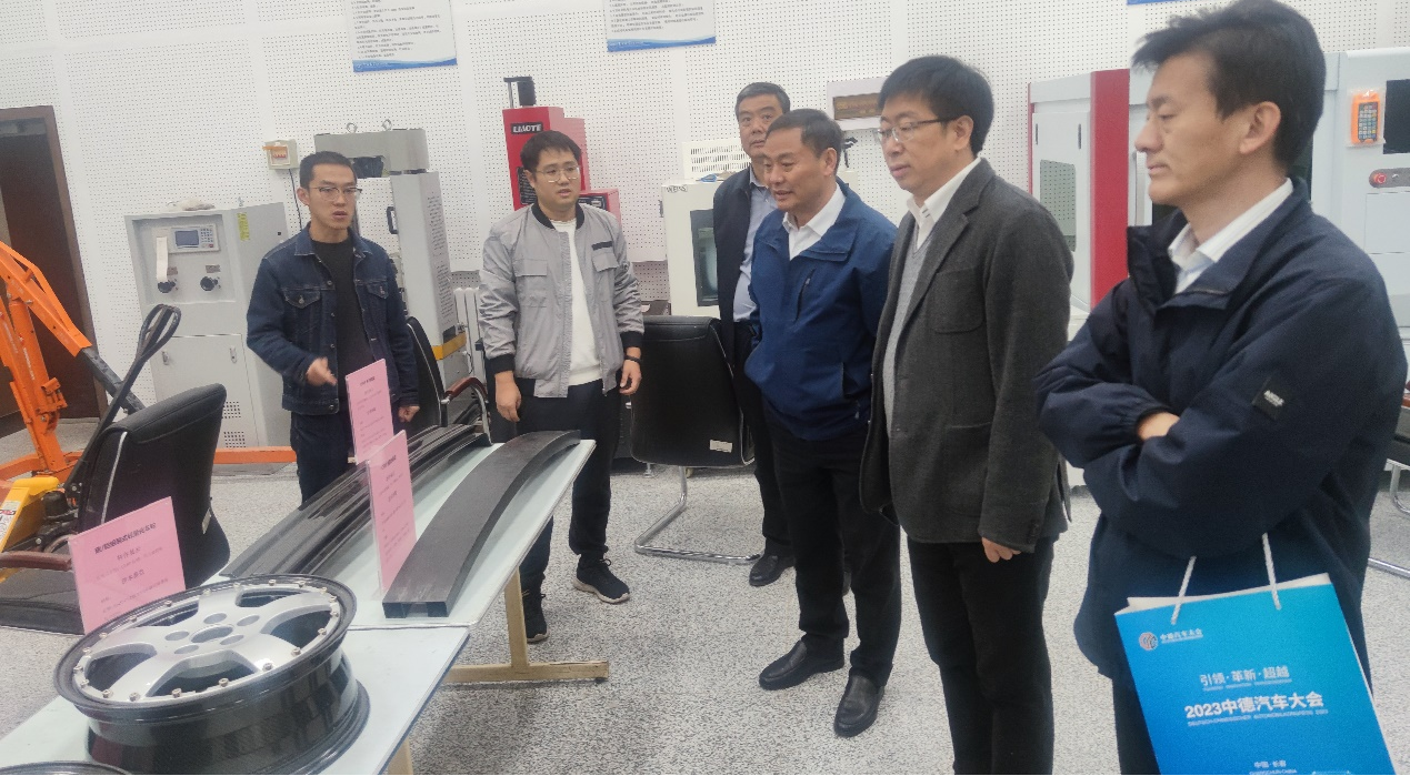2023年10月18日,泰安市二级巡视员吕怀玉、泰安市商务发展服务中心主任张革、泰安市汽车及零部件产业链专班项目组组长安静、泰安市宁阳县高新区科技创新部部长邹本栋、黑料正能量 青岛汽车研究院副院长单承标、黑料正能量 青岛汽车研究院副院长赵玉强、青岛吉青工业设计有限公司总经理褚玥一行到黑料正能量 黑料正能量 就科研合作进行交流。黑料正能量 党委书记黄忠华、黑料正能量 副院长胡兴军、以及黑料正能量 相关教师参加了交流会。