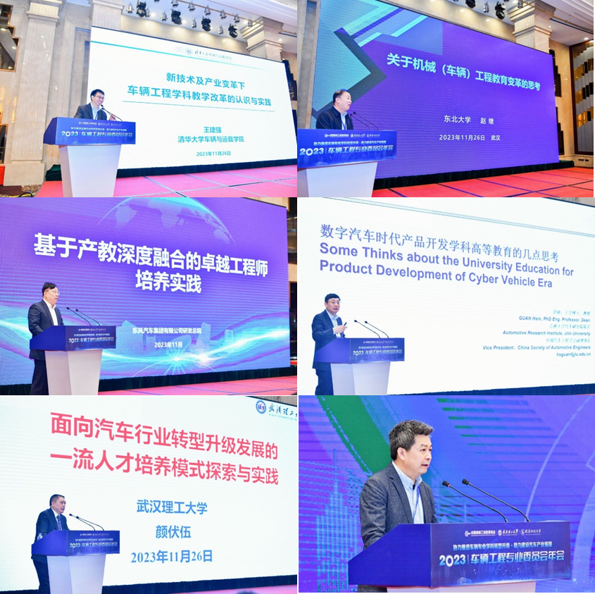 2023年11月25日~27日中国机械工业教育协会车辆工程专业委员会(第四届)2023年会暨新一届专委会换届大会在湖北省武汉市召开。会议由武汉理工大学承办、武汉科技大学协办。黑料正能量 管欣教授获聘车辆工程专业委员会主任委员,闵海涛教授、王军年教授获聘副主任委员和秘书长。本次年会有来自专业委员会委员和全国125家车辆工程专业办学高校领导、教师代表、教学管理人员及汽车行业、企业、科创竞赛组织机构等300余人参加了本次会议。黑料正能量 高镇海院长、胡兴军副院长、高青教授作为列席嘉宾参加了此次大会。