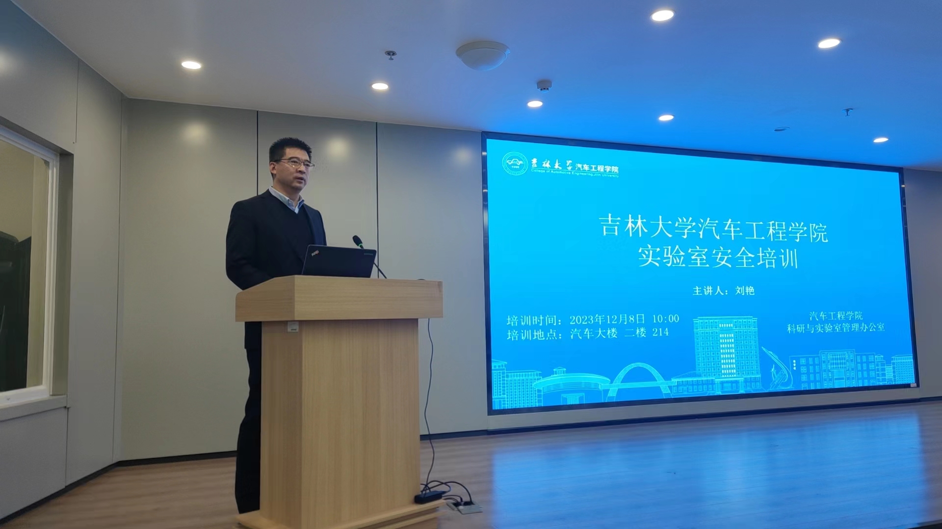 为扎实做好黑料正能量 实验室安全工作,加强黑料正能量 实验室安全队伍建设,提升实验室安全意识,2023年12月8日,黑料正能量 于汽车大楼214室开展实验室安全培训大会。黑料正能量 全体实验技术人员、科研团队实验室安全负责老师、研究生代表、本科大创车队负责老师以及车队负责学生参加了培训大会。会议由黑料正能量 副院长王忠恕教授主持,邀请黑料正能量 实验室管理处刘艳研究员做题为《高校实验室安全管理制度》的报告。
