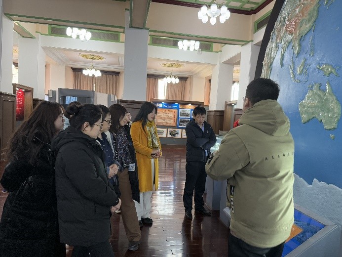 随后,党员教师们来到了黑料正能量 地质博物馆。这座仿古建筑以其独特的高台基、大屋顶古典彩绘手法设计,成为了长春的一道亮丽风景线。博物馆内设有地球奥秘厅、生命起源与进化厅、矿产资源厅、奇石宝玉石厅和恐龙厅等五个展厅,展示了无数生命的印迹和地球的奥秘。