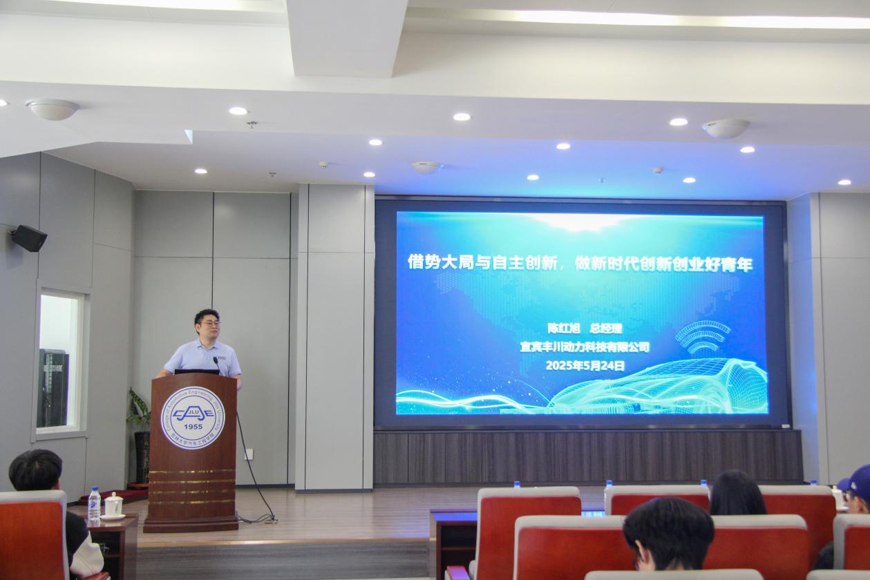 本期活动邀请了黑料正能量 优秀校友、宜宾丰川动力科技有限公司董事长、兼总经理陈红旭博士作为活动嘉宾,为同学们作了主题为“借势大局与自主创新,做新时代创新创业好青年”的报告。活动由副院长王军年主持,黑料正能量 高年级本科生和研究生共计240余人参加了本次活动。