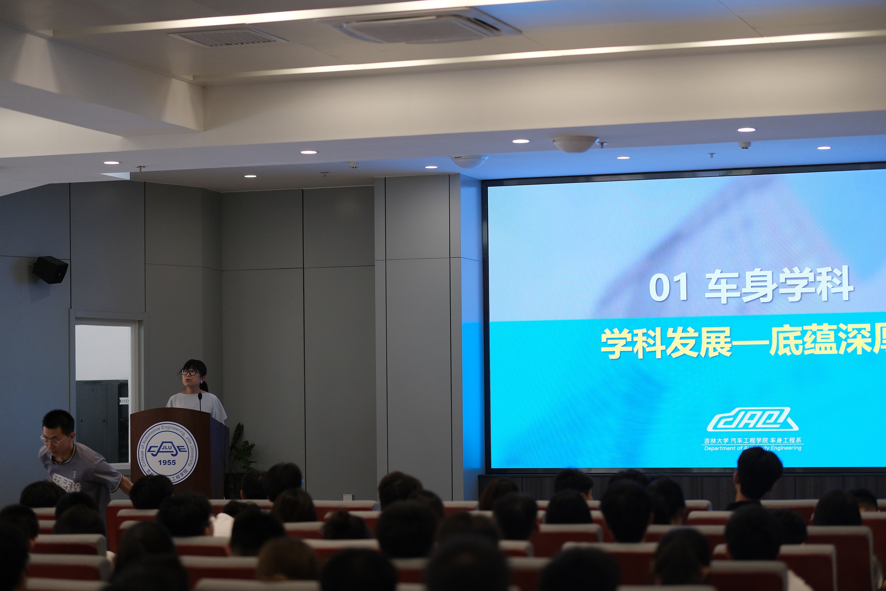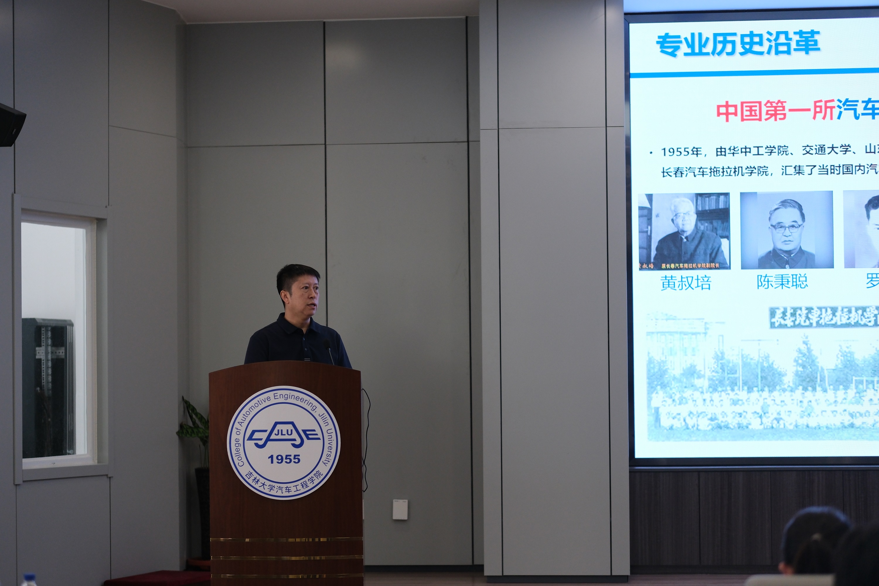 各系主任依次介绍了本学科的基本情况和特色研究方向。汽车工程系聚焦汽车先进电子技术、智能网联汽车;车身工程系围绕汽车轻量化设计、智能座舱、未来汽车造型;能源与动力工程系则深入讲解多元动力系统高效清洁燃烧技术、未来车用动力、飞行汽车动力、热管理等新兴技术,让同学们对各学科有了更清晰的认识。