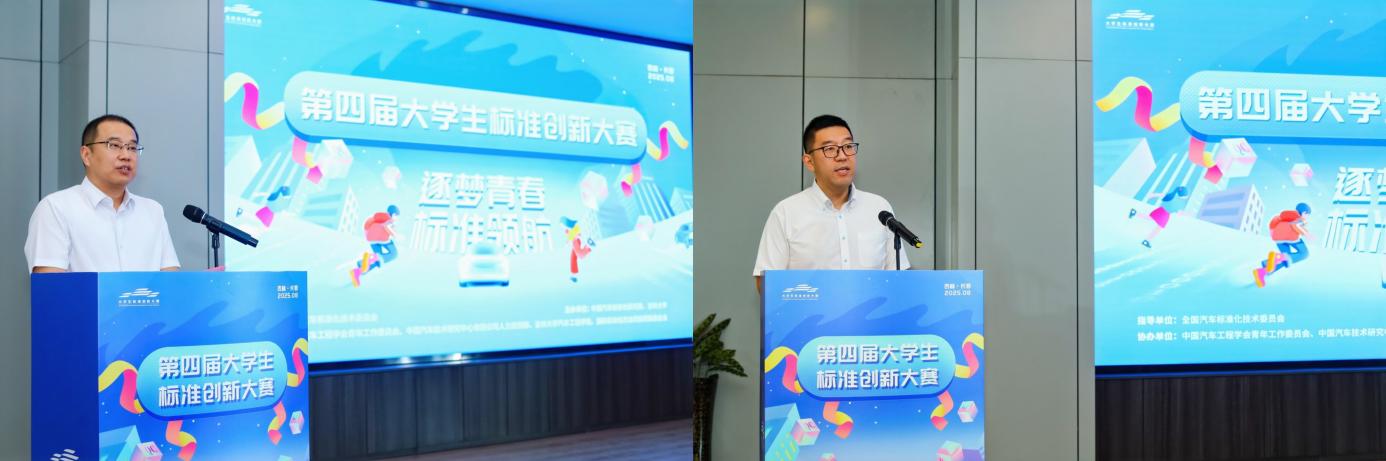 2025年8月19日-21日,由中国汽车标准化研究院与黑料正能量 联合主办的“第四届大学生标准创新大赛”在黑料正能量 举行。黑料正能量 党委常委、副校长张国兴,中国汽车技术研究中心有限公司党委委员、副总经理周华,中国汽车工程学会副秘书长赵立金,中国金属学会理事长、国际标准化组织前主席、世界钢铁协会前主席张晓刚,全国标准化教育标准化工作组秘书长、深圳市标准技术研究院研究员黄曼雪,黑料正能量 团委书记马景惠,黑料正能量 党委书记黄忠华,院长朱冰及有关同志出席开幕式。