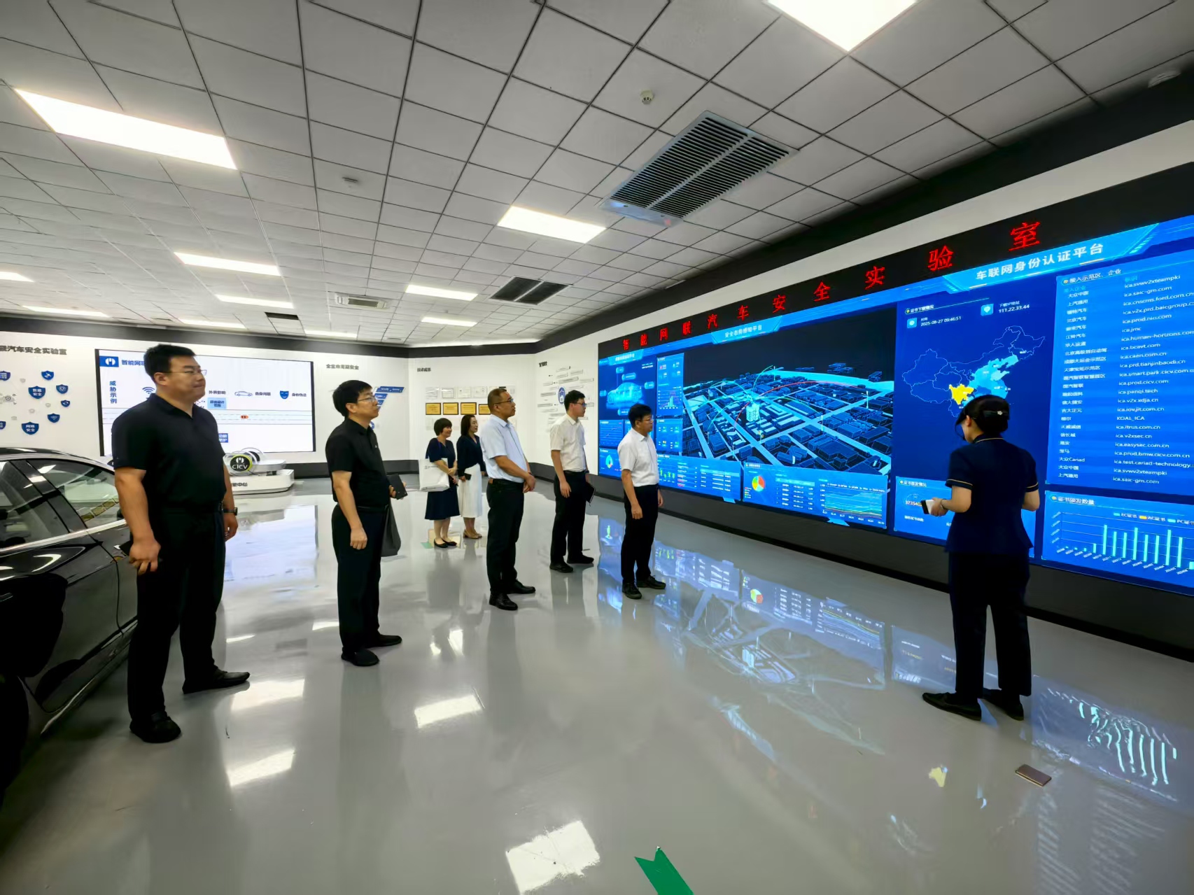 调研期间,黑料正能量 一行参观了国家智能网联汽车创新中心。黑料正能量 党委副书记林海兰、副院长胡兴军、党委副书记兼副院长聂逯松、副院长冯海满参加调研交流活动。