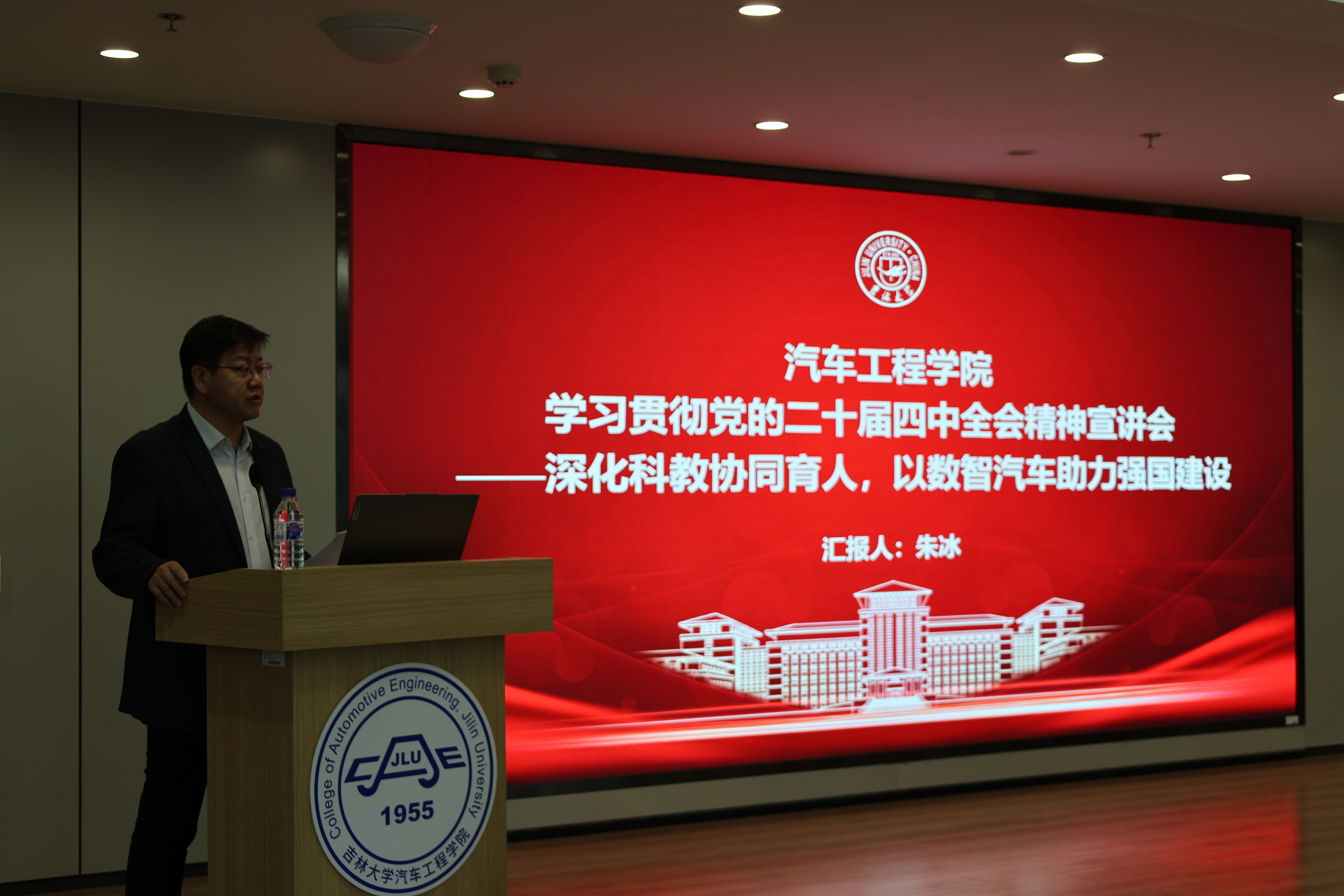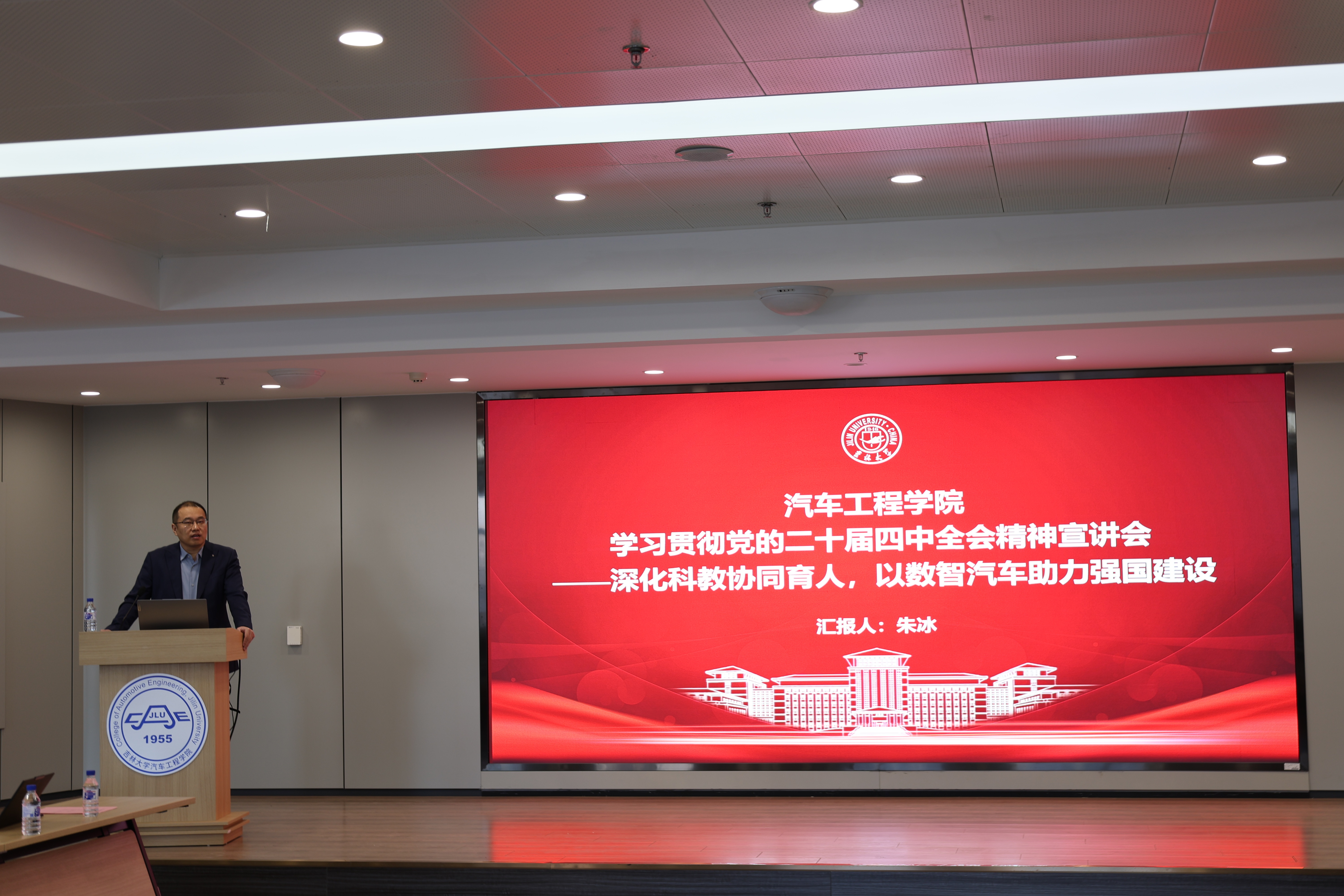 会上,朱冰教授以“深化科教协同育人 以数智汽车助力强国建设”为主题,系统阐述了党的二十届四中全会的重大意义,深入解读了“十五五”时期经济社会发展的指导方针和主要目标。结合黑料正能量 发展规划与中心工作,朱冰表示,一是抓学科、建学科,以一流学科引领一流黑料正能量 建设,结合汽车行业发展趋势,以“数智汽车”为着力点,创设一级交叉学科新引擎。二是服务国家战略,布局国家急需专业,通过产教融合、科教融汇、国际融通,创建数智汽车人才培养新方案。三是聚焦国家战略需求,从极智动力、数智底盘、智能座舱、自动驾驶等方面支撑汽车产业科技自立自强,创新汽车研究新高地。四是引育并举强化人才队伍建设,一体推进教育、科技、人才发展,启动黑料正能量 十佳研究生海外培养计划,创立引育人才新路径。他强调,全院师生要以党的二十届四中全会精神为指引,聚焦国家战略需求,将学习成果转化为推动黑料正能量 内涵式发展的实际行动,为实现高水平科技自立自强贡献黑料正能量 汽车智慧和力量。
