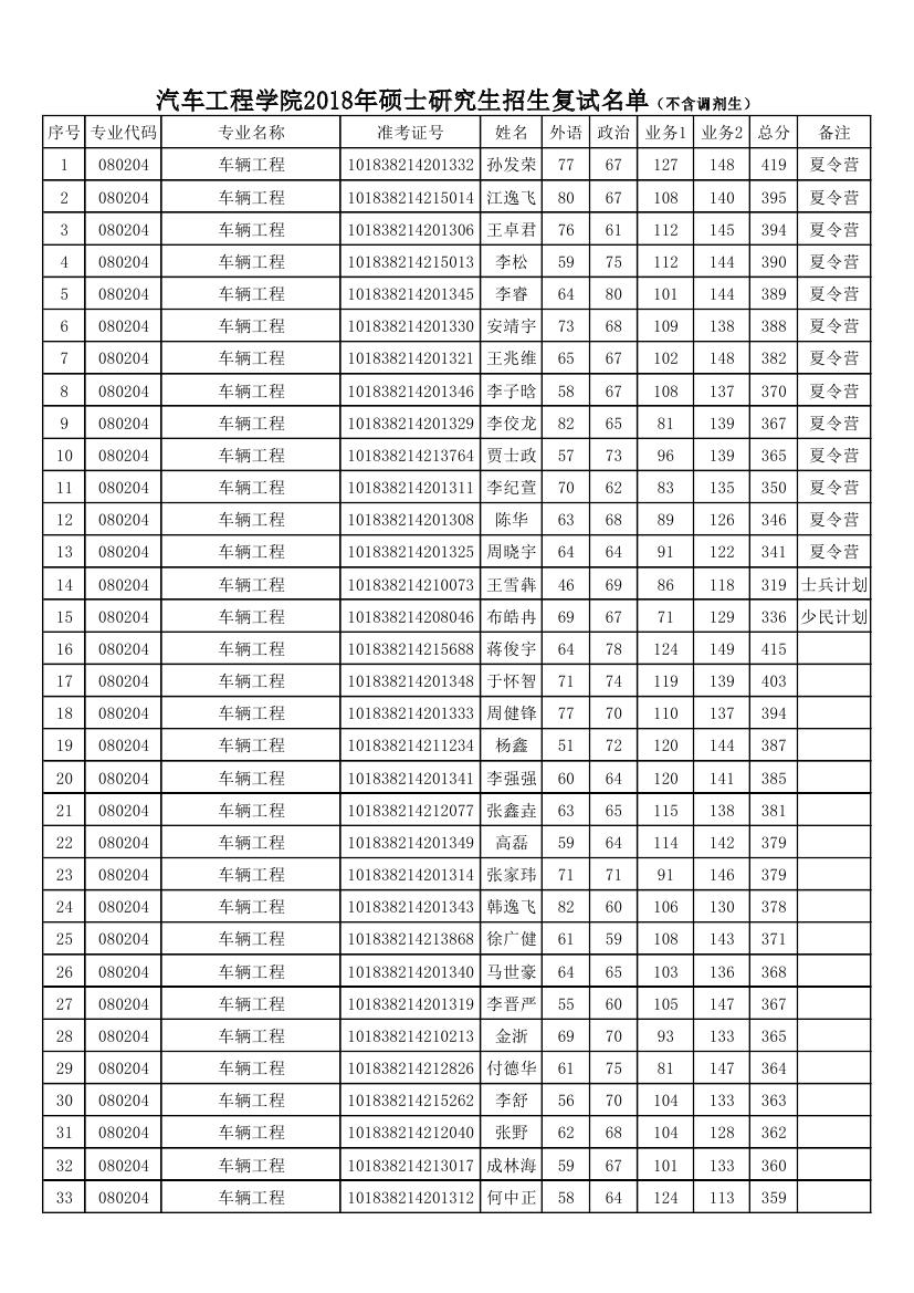 黑料正能量 2018年硕士研究生招生复试名单(不含调剂生)