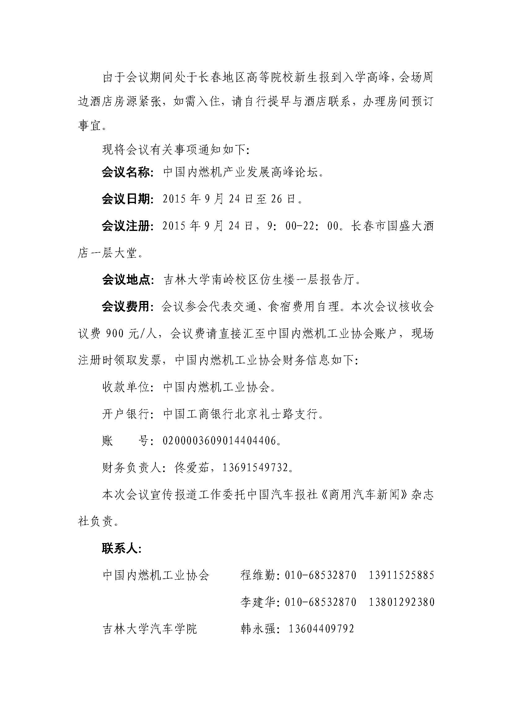中内协(2015)068号 关于召开中国内燃机产业发展高峰论坛的通知