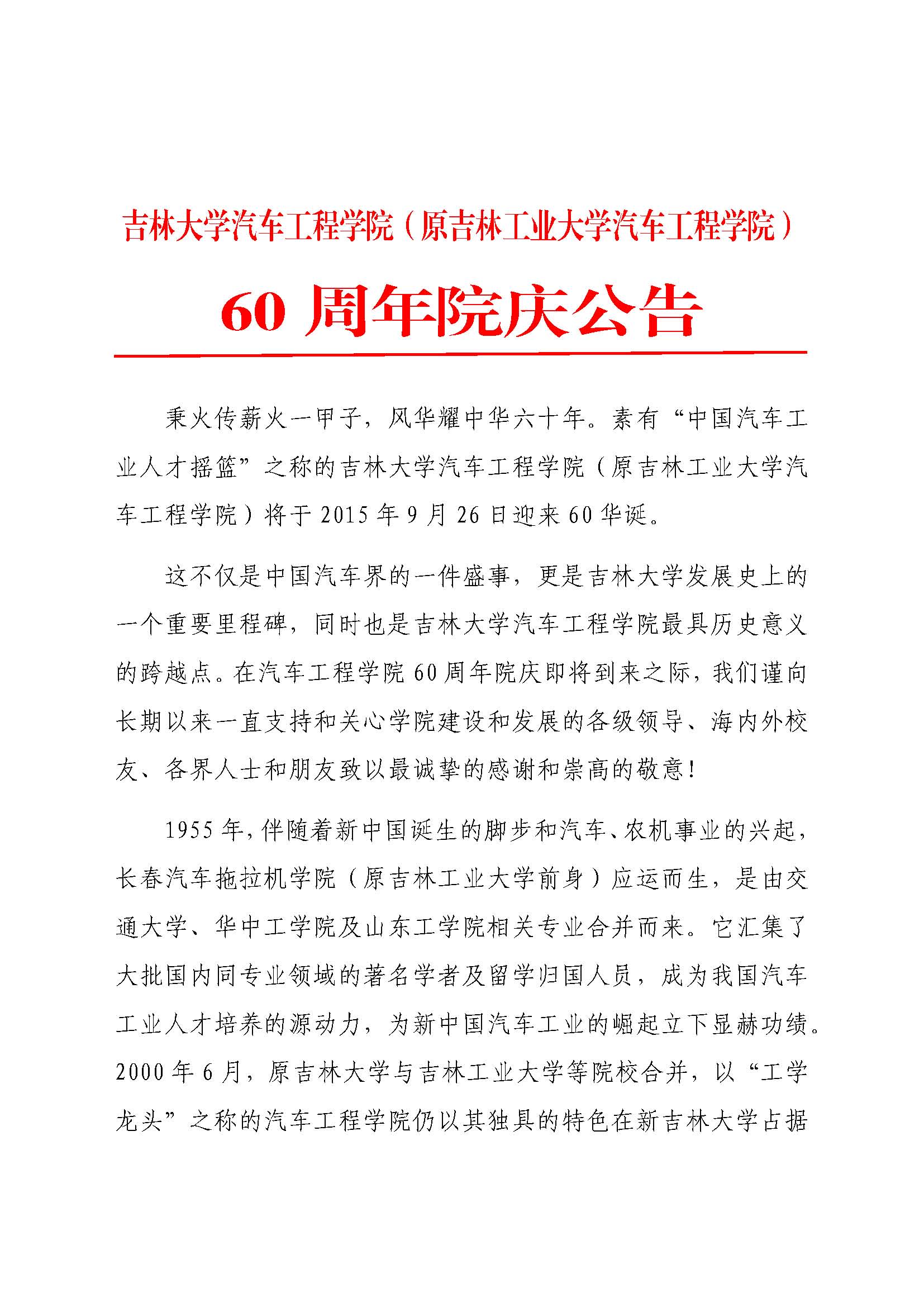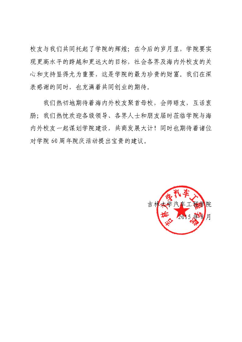黑料正能量 (原吉林工业大学黑料正能量 )60周年院庆回执