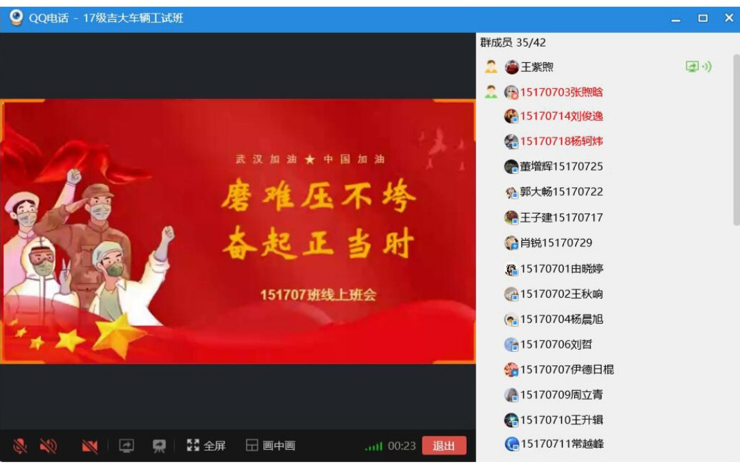 其中学生工作办公室主任吴昊老师与151701班的同学们连线交流。因为已经步入大三下学期,很多同学对于未来是否就业还是继续求学有很多的疑问。吴昊老师根据同学们的实际情况和就业形势解答了同学们关于未来规划的困惑。他强调:不管在什么时候,只有自身拥有强大的专业本领,才会在未来竞争的舞台上拥有一席之地。他勉励同学们在特殊时期既要注意身体安全,也不能有所松懈,一定要抓住在家学习的这段日子,努力提升自己,为自己美好的前程和社会未来的发展继续努力奋斗。