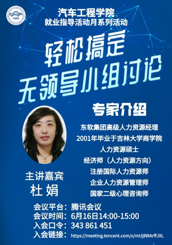 杜娟女士生动细致的讲解让学生对无领导小组的讨论都有了清晰的认识,也掌握了应对面试技巧和无领导小组会议的技巧,相信同学们在以后的面试中一定能够表现出更好的自己,展现汽车人的风采!