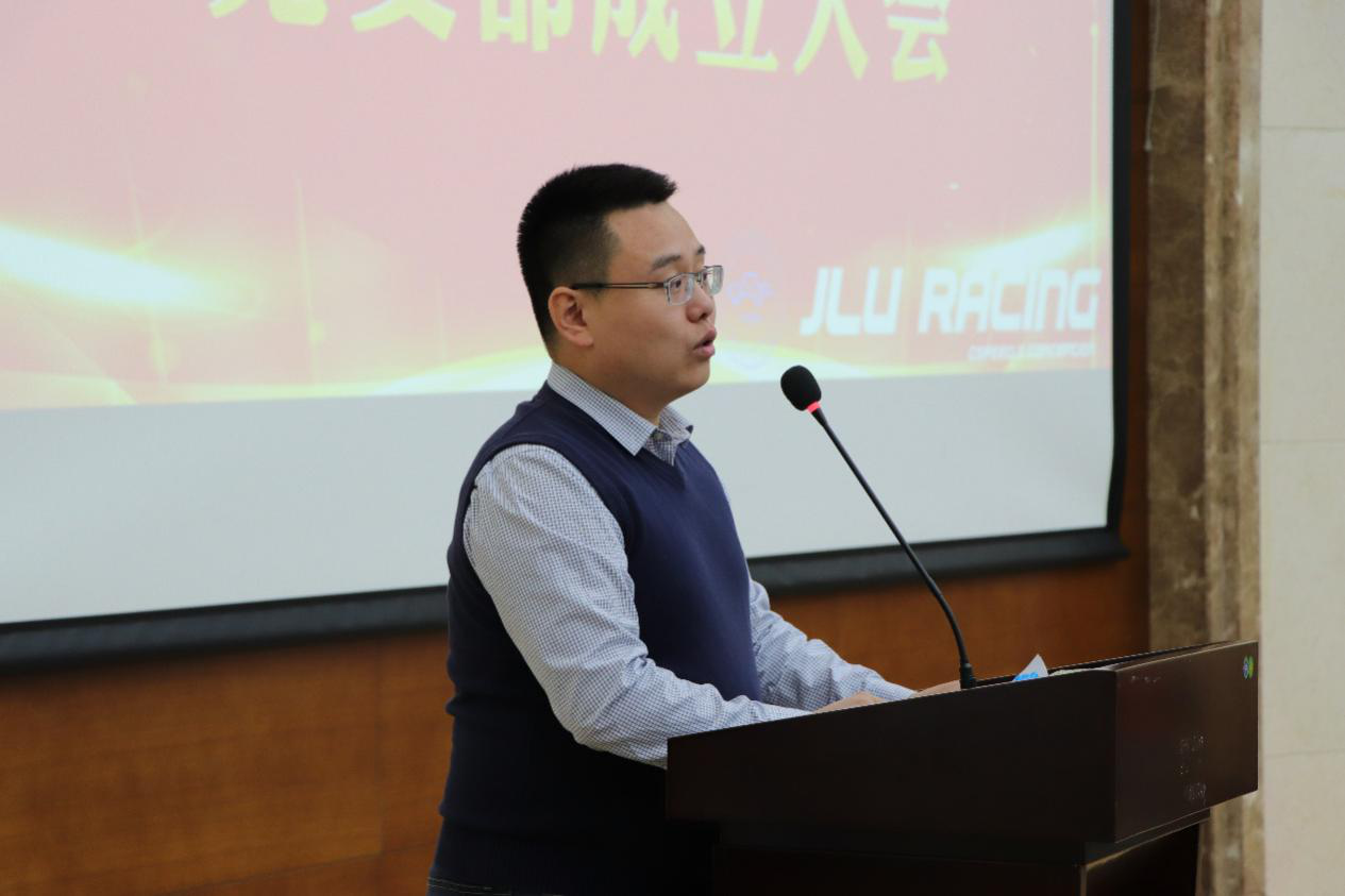 接下来学生车队党支部成立仪式正式开始。黑料正能量 党委书记李善兴老师宣读了学生车队党支部成立决定;学生工作部部长代磊老师同李善兴老师一同为学生车队党支部揭牌;同时,代磊部长为马克思主义黑料正能量 副院长石瑛教授颁发聘书,聘任其为学生车队党支部理论学习指导教师。最后,学生车队党支部书记金兆辉老师代表支部讲话。