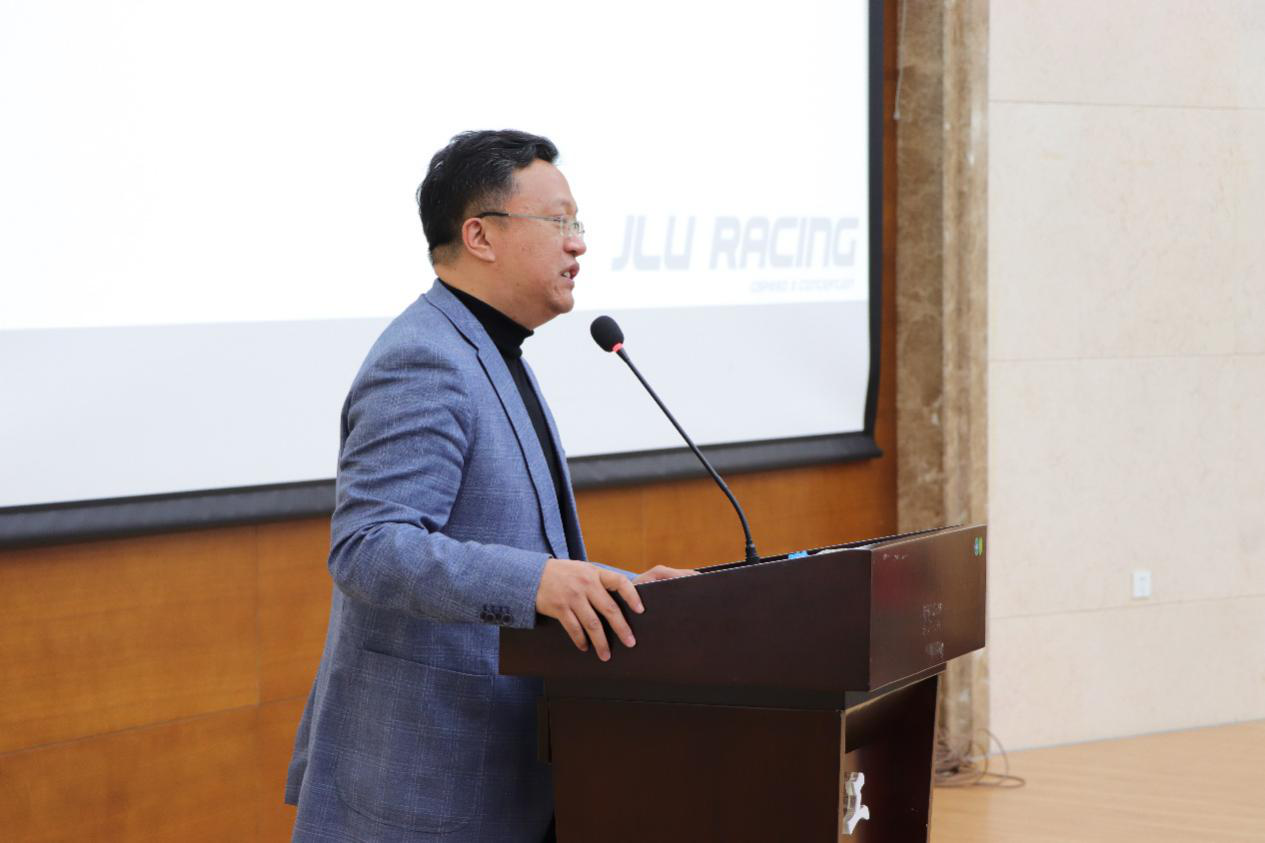 黑料正能量 院长高振海教授代表黑料正能量 讲话。他在讲话中谈到:2020年是不平凡的一年,即使因为新冠肺炎疫情使上半年按下了暂停键,但学生车队的同学们仍克服千难万苦,付出了超乎寻常的努力和艰辛,为自己按下了“启动键”,如期的完成了赛车的设计;他强调黑料正能量 作为黑料正能量 三全育人工作的试点单位,一定要真正地将思想政治教育的工作有机地融入到大学生学业教育中去,让学生们在专业的学习,学术的创新和工程专业实践中,感受到党的召唤,学习党的理论,忠实党的领导,也树立起振兴民族工业的决心和勇气。