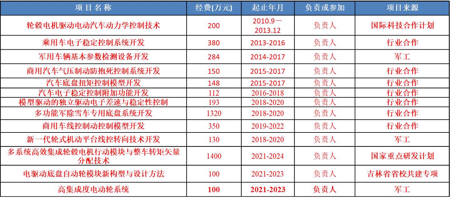 长期从事车辆底盘创新构型及动力学控制领域的教学与科研工作;在车辆智能化的动力学问题及超级稳定性控制技术、轮毂电机驱动汽车创新构型等方面做了基础性与开拓性工作,取得了多项重要的工程应用成果。先后在车辆电子稳定控制系统产业化、车辆四驱控制系统产业化等产业卡脖子技术领域取得突破,开发的国产ESC系统及间接式胎压监控技术在多达20余款车型得到批量应用,车辆机械四驱及电动四驱控制技术也在多个主机厂得到推广应用。所研发的轮毂电机集成驱动模块关键技术进入产业化应用阶段。获授权发明专利50余项,发表SCI收录论文30余篇。近10年作为负责人承担包括国家及省部级在内的重点科研项目(百万级以上)13项,项目总经费合计5000余万元。2021年获批国家重点研发计划课题(1400万)。现领导黑料正能量