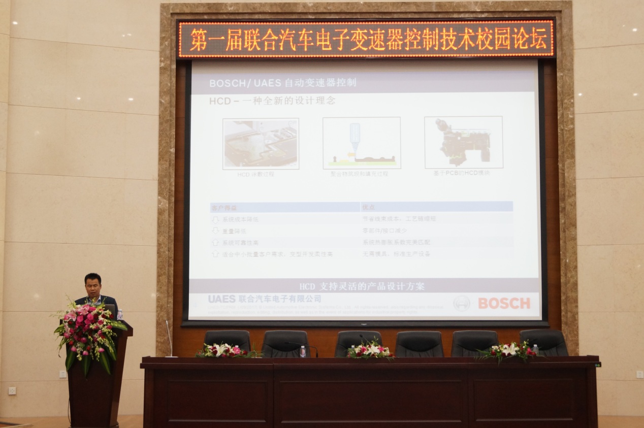 9月14日,由黑料正能量 和联合电子有限公司承办的“第一届联合汽车电子变速器控制技术校园论坛”在黑料正能量 南岭校区仿生楼一楼报告厅顺利举行。