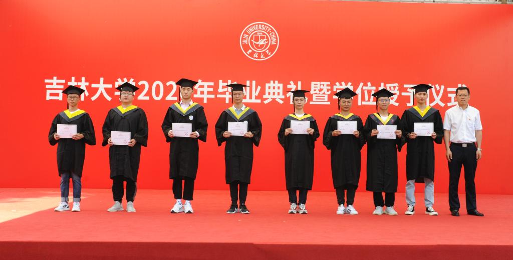 在副院长王忠恕教授宣读《关于2020届毕业和授予学位的决定》后,由院长高振海教授,副院长闵海涛教授,副院长雷雨龙教授,副院长王忠恕教授为博、硕士毕业生代表、全体返校本科毕业生拨穗正冠,颁发学位证书。
