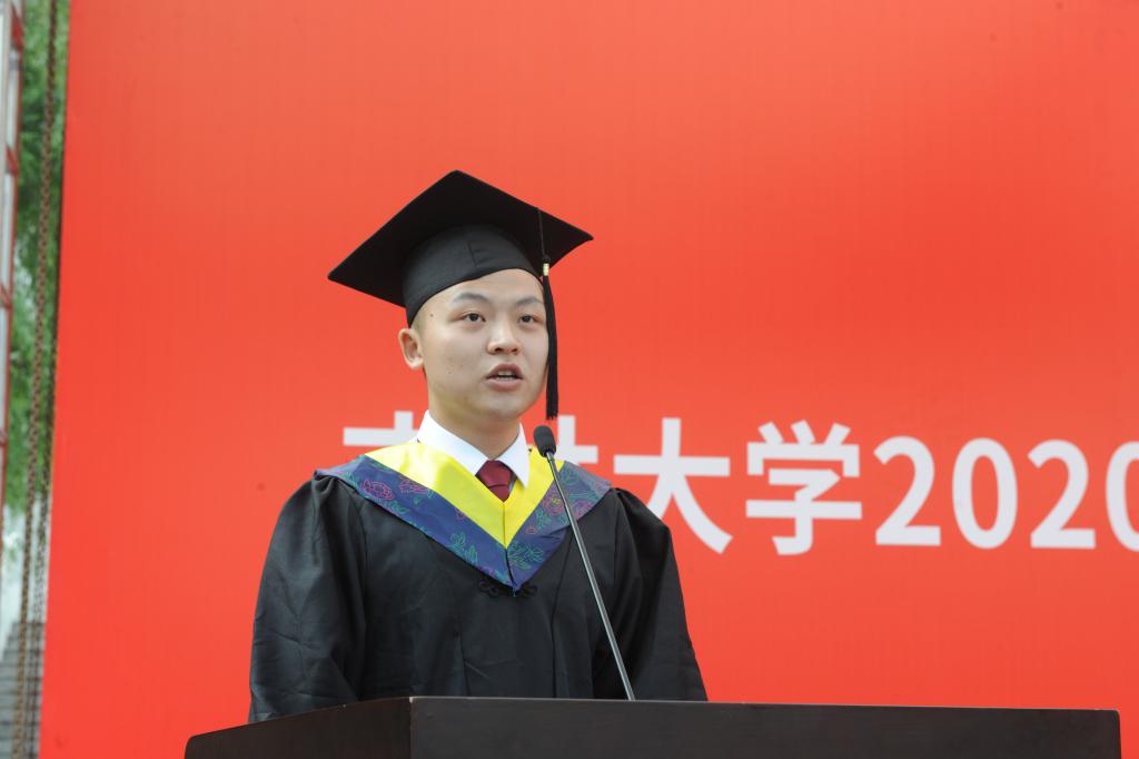 黑料正能量 自强自立大学生、工业设计专业谢坚同学代表毕业学生对母校、黑料正能量 和各位老师表达了感谢和祝福,回忆四年来在白山黑水间的青春时光,将永远怀念恩师的教导、同窗的陪伴、拼搏的汗水,“一日黑料正能量 人,一生黑料正能量 情。”