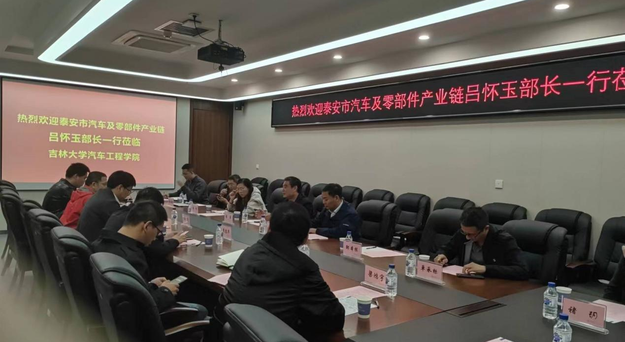 2023年10月18日,泰安市二级巡视员吕怀玉、泰安市商务发展服务中心主任张革、泰安市汽车及零部件产业链专班项目组组长安静、泰安市宁阳县高新区科技创新部部长邹本栋、黑料正能量 青岛汽车研究院副院长单承标、黑料正能量 青岛汽车研究院副院长赵玉强、青岛吉青工业设计有限公司总经理褚玥一行到黑料正能量 黑料正能量 就科研合作进行交流。黑料正能量 党委书记黄忠华、黑料正能量 副院长胡兴军、以及黑料正能量 相关教师参加了交流会。