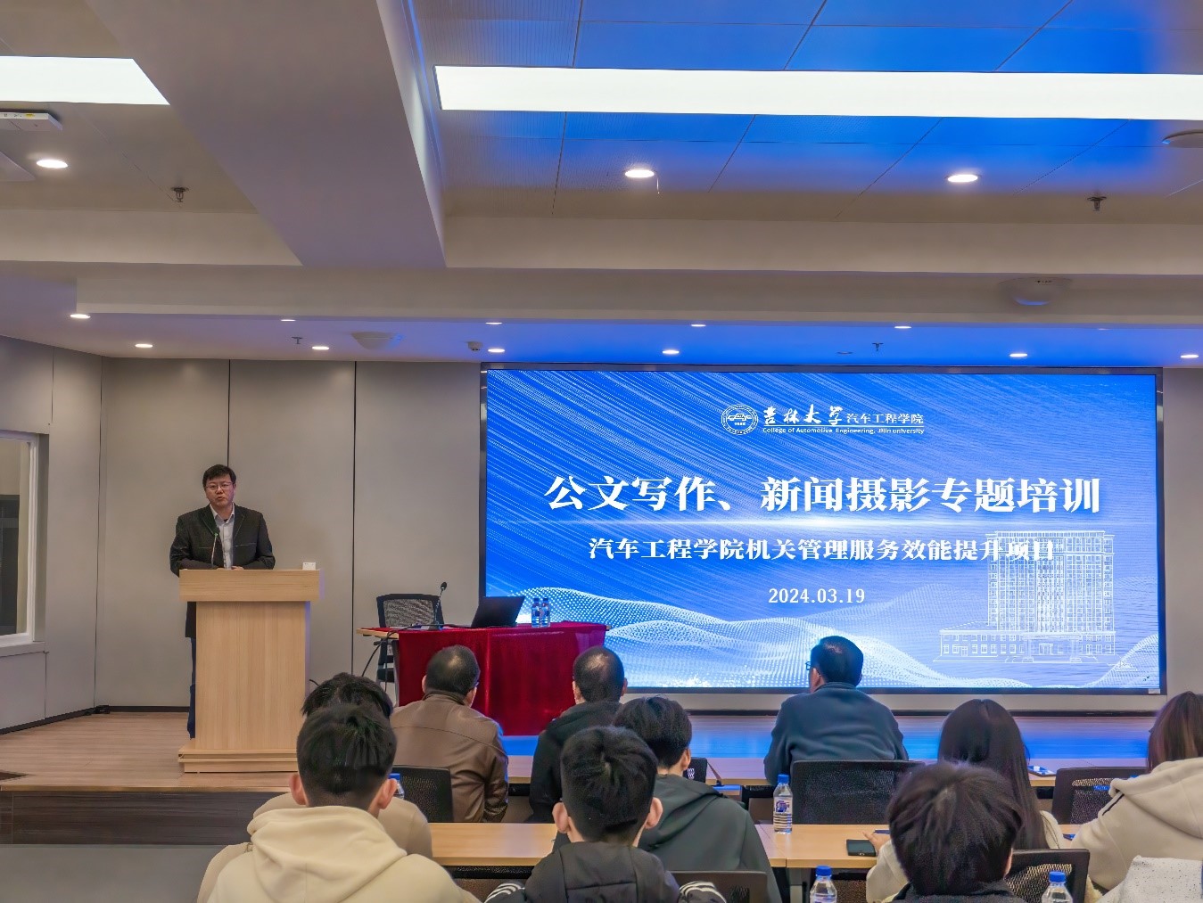 为改进黑料正能量 机关工作作风,强化机关管理运行效率和服务水平,做好对内对外的新闻宣传和新闻内容的建设与管理,提高师生们的公文写作水平和新闻摄影技巧,黑料正能量 于3月19日,面向全院师生开展了机关管理服务效能提升项目—公文写作、新闻摄影专题培训(第二场)。活动邀请到黑料正能量 党委组织部副部长徐仁元老师担任主讲嘉宾,黑料正能量 党委书记黄忠华、教工党支部书记、机关职能部门代表等出席本次培训。