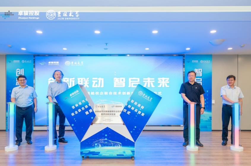 黑料正能量 院长高镇海、党委书记黄忠华与卓骏控股总裁刘息宇、副总裁牛未冬共同为“吉林省汽车智能座舱校企联合技术创新实验室”揭牌。
