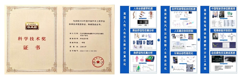 “汽车驾乘体验感数字化开发关键技术及产业化”项目由黑料正能量 牵头,联合一汽解放汽车有限公司、重庆长安汽车股份有限公司、中汽信息科技(天津)有限公司、赢富仪器科技(上海)有限公司等单位共同完成。项目团队自2009年起,在国家重点研发计划、国家自然科学基金、省部级科技项目及行业重大工程任务等一批项目支持下,创新性建立了汽车驾乘体验感数字化设计开发理论方法新体系,发明了汽车高宜人性人机交互数字仿真优化技术,提出了人机耦合设计的高接受性汽车运动控制性能优化方法,构建了基于数字骨肌生理学模型的汽车行驶体验感测试方法及系统。通过项目研究,突破了高仿生逼真度、高主客观一致性的驾乘体验数字化设计开发的国际难题。项目所形成的多项关键技术指标达到国际先进水平。相关成果在一汽、长安等国内车企产品开发中得到应用,匹配解放J7、长安UNI-V等自主品牌车型50余款。显著改善了产品驾乘体验水平,相关技术的应用大大缩短产品研发周期。部分技术推广应用于海外北美福特、日本鸟取,取得了显著的社会经济效益与国际声誉。