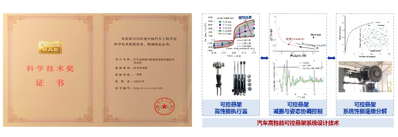 “汽车高性能可控悬架系统关键技术及应用”项目由黑料正能量 牵头,联合长春孔辉汽车科技股份有限公司、浙江孔辉汽车科技有限公司、一汽东机工减振器有限公司等单位共同完成。项目团队自2011年以来,在国家自然科学基金、国家重点研发计划和企业支持下,系统地突破并发明了可控悬架高性能执行器、可控悬架减振与姿态协调控制技术和可控悬架系统性能逐级分解技术。通过项目研究,攻克了可控悬架执行器系统设计难、悬架动态控制多维度协调难和可控悬架整车集成性能分解难的国际共性难题,实现了高性能可控悬架系统独立自主的正向开发。项目所形成的多项关键技术指标达到了国际领先和先进水平。项目成果应用于长安汽车、东风汽车、岚图汽车等整车和零部件企业,应用单位近3年新增销售额超过18亿,支撑浙江孔辉占2023年国内空气悬架总成市场份额的44.5%,超越威巴克和德国大陆,跃居第一名,支撑了自主品牌的强势崛起。
