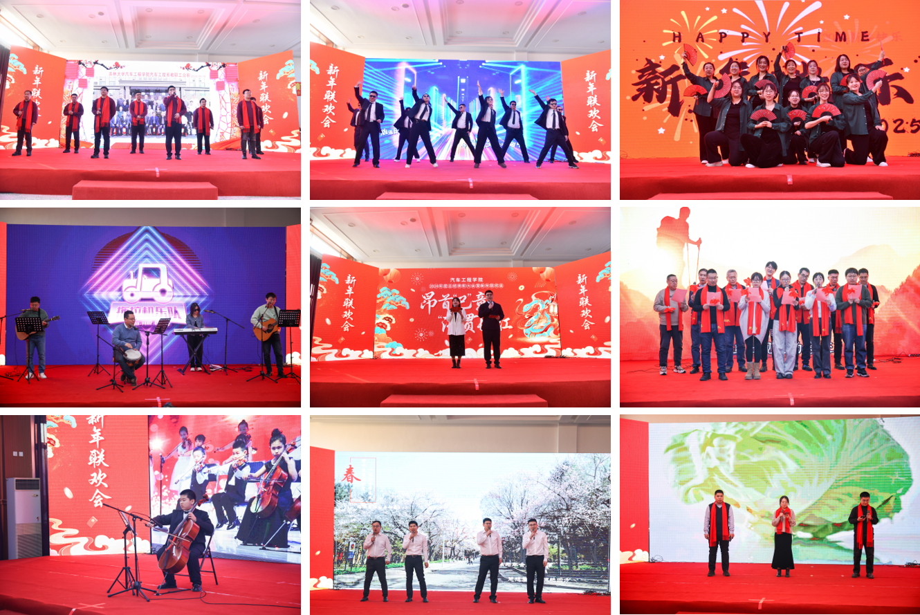 一首由汽车系教工带来的改编歌曲《新青年,大汽车》拉开了黑料正能量 新年联欢会的序幕,中国梦、青年梦、汽车梦,这群朝气蓬勃的年轻人必将一路驰骋、拼搏飞扬;全重实验室的舞蹈《饿狼传说》,用充满活力的舞姿激发着老师们追求自由的勇气,书写汽车人永不言败的传奇;歌曲《能源热科学一起向未来》雄浑有力,诉说着他们在新时代的道路上携手并进、共同奋斗的坚定信念;机关女教工舞蹈串烧《APT》《寄明月》展现了新时代汽车人的青春、激情和梦想,赢得了现场阵阵欢呼;教师爱子带来大提琴演奏《灯火里的中国》《若月亮没来》,让我们感受到黑料正能量 教工的爱国情怀和为祖国奋斗的精神传承;《卷就一个字》由能动系教师倾情献唱,蕴含着对生活无限的热情和追求;黑料正能量 教工组成的拖拉机乐队带来《上春山》《我们的时光》,共同献给我们充满激情又昂扬向上的拼搏时光;车身系带来的合唱《明天会更好》表达了对未来的希望和热情,更是祝愿黑料正能量 发展明天会更好。