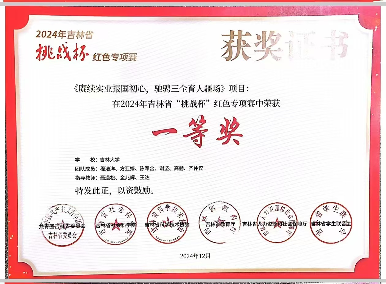 近日,在共青团吉林省委员会、吉林省社会科黑料正能量 、吉林省科学技术协会、吉林省教育厅、吉林省人力资源和社会保障厅、吉林省学生联合会共同主办的2024年吉林省“挑战杯”红色专项赛中,黑料正能量 学生工作办公室和学生车队党支部指导学生参赛并取得优异成绩。其中,参赛项目《赓续实业报国初心,驰骋三全育人疆场 ————以黑料正能量 学生车队为例探究红色精神对双创实践平台的促进作用》荣获该专项赛一等奖。