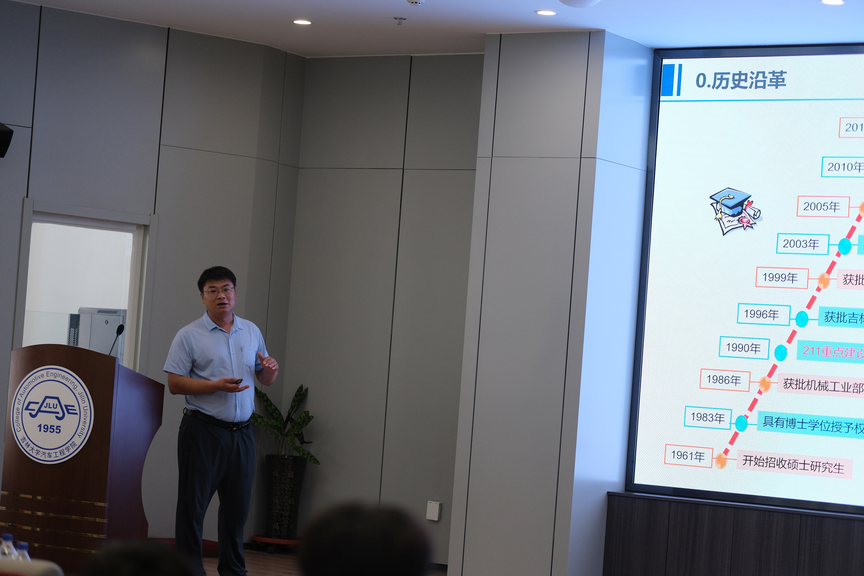各系主任依次介绍了本学科的基本情况和特色研究方向。汽车工程系聚焦汽车先进电子技术、智能网联汽车;车身工程系围绕汽车轻量化设计、智能座舱、未来汽车造型;能源与动力工程系则深入讲解多元动力系统高效清洁燃烧技术、未来车用动力、飞行汽车动力、热管理等新兴技术,让同学们对各学科有了更清晰的认识。