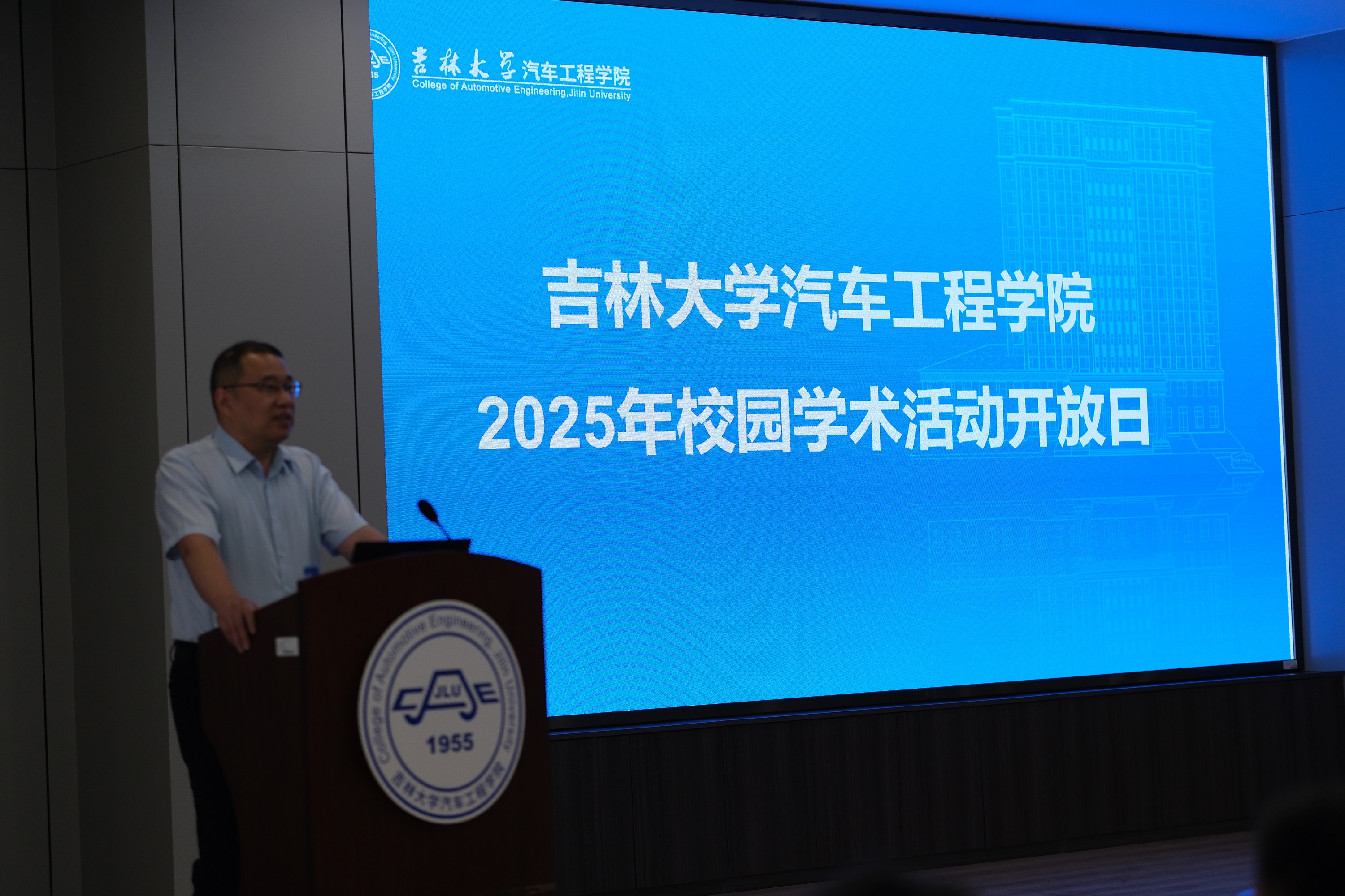 7月7日上午,开放日开幕式在黑料正能量 汽车大楼黎明报告厅举行。出席开幕式的嘉宾有院长朱冰教授、副院长李明教授、汽车系主任吴坚教授、车身系主任兰巍教授、内燃机系主任解方喜教授,以及研究生学科与学位办公室工作人员和志愿者们,开幕式由李明教授主持。