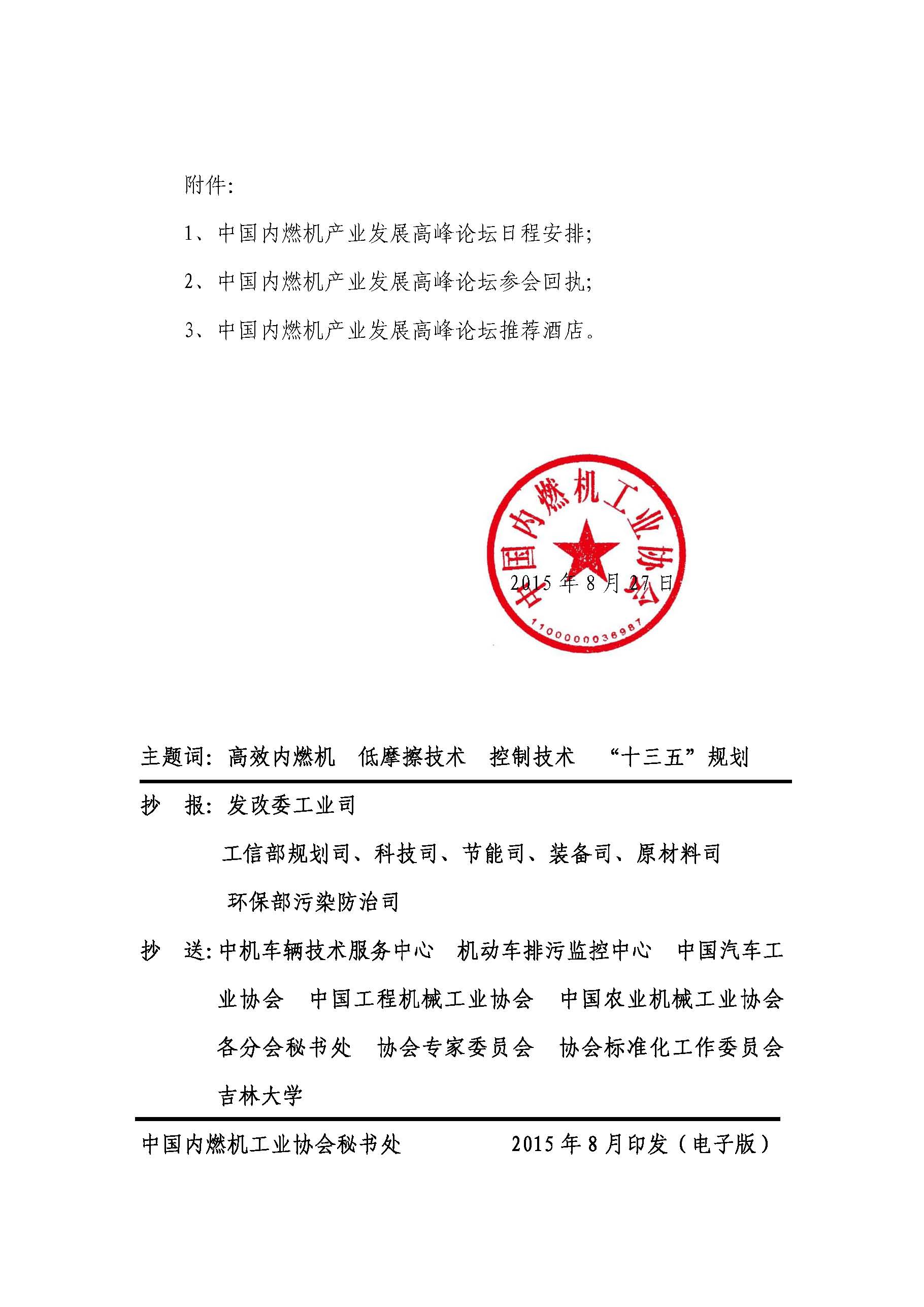中内协(2015)068号 关于召开中国内燃机产业发展高峰论坛的通知