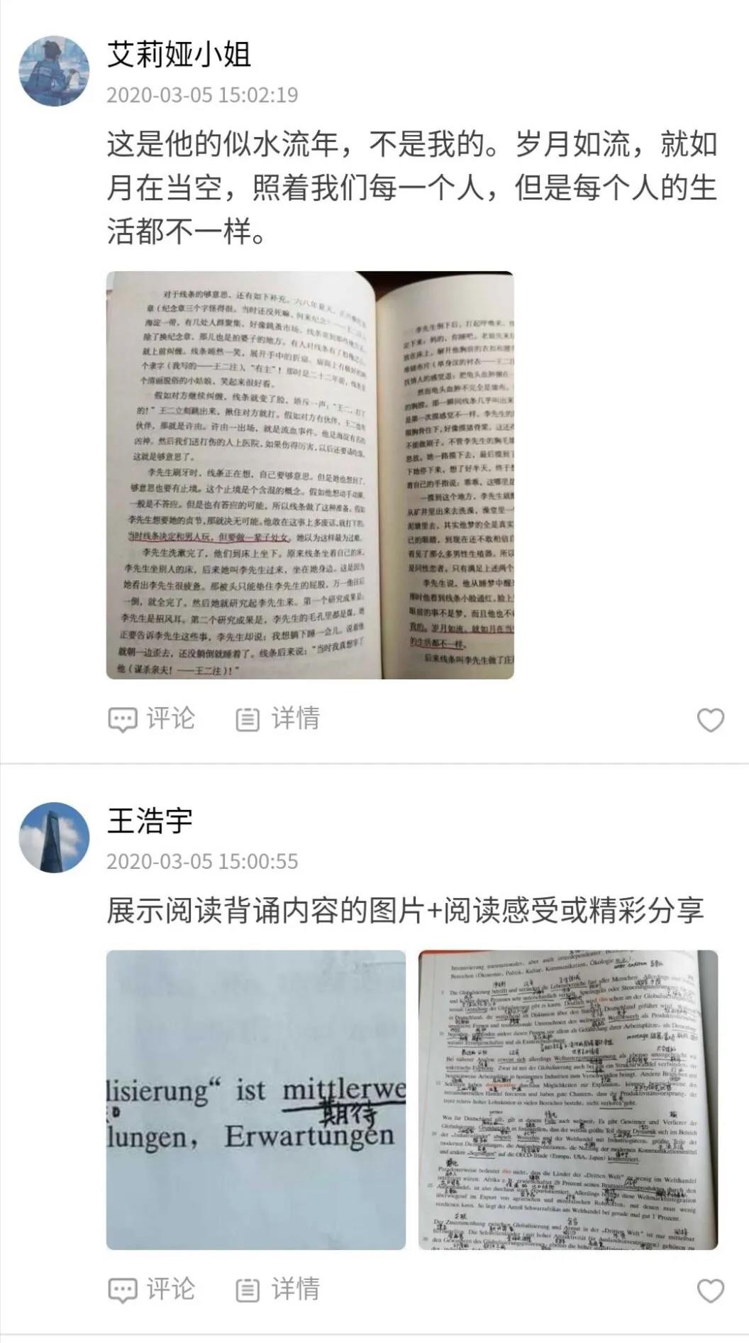 本次连续15天不间断读书打卡活动,要求同学们按照活动规定,每天将自己当天的阅读内容进行截图或拍照,并在规定的时间段内,进入程序打卡。通过每天打卡记录的方式,同学们可以相互激励督促,使参与者们在浓厚的阅读氛围中,养成每天坚持阅读的良好习惯。在网络授课期间,学习课本知识的同时,丰富个人内心世界,熏陶个人思想情怀,培养个人精神内涵。同学们积极响应,纷纷加入到此次每日一读的洪流中来,并以此活动为契机,在阅读中享受文字带来的精神满足。活动开始第一周,就有56位的同学踊跃参与了进来,覆盖黑料正能量 全部年级和专业。同学们阅读的内容多种多样,古今中外莫不涉猎。