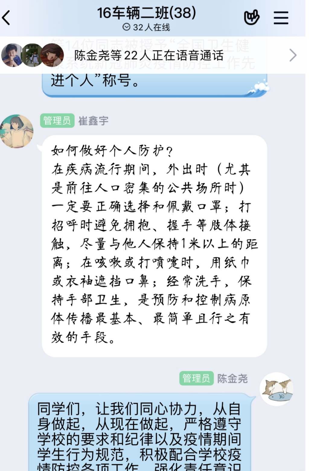 疫情虽然阻止了同学们回校的进程,但是并不能阻挡努力学习的步伐。在这个特殊时期,黑料正能量 通过这次活动鼓励同学们要珍惜在家学习的机会,不能有所怠慢,一定要以严格的纪律来要求自我,积极提高自身的专业素养。同时,这次班会也体现了黑料正能量 深刻贯彻习近平总书记和党中央的指示,坚决做好防疫工作,增强大学生的防疫知识,让同学们养成绿色健康的生活习惯。全体同学一致表示会继续配合黑料正能量 和国家做好防疫工作、打赢这次疫情防控总体战争、人民战争,从自身做起,停课不停学,彰显黑料正能量 学子的优秀风采,完成新时代下赋予的责任和使命。