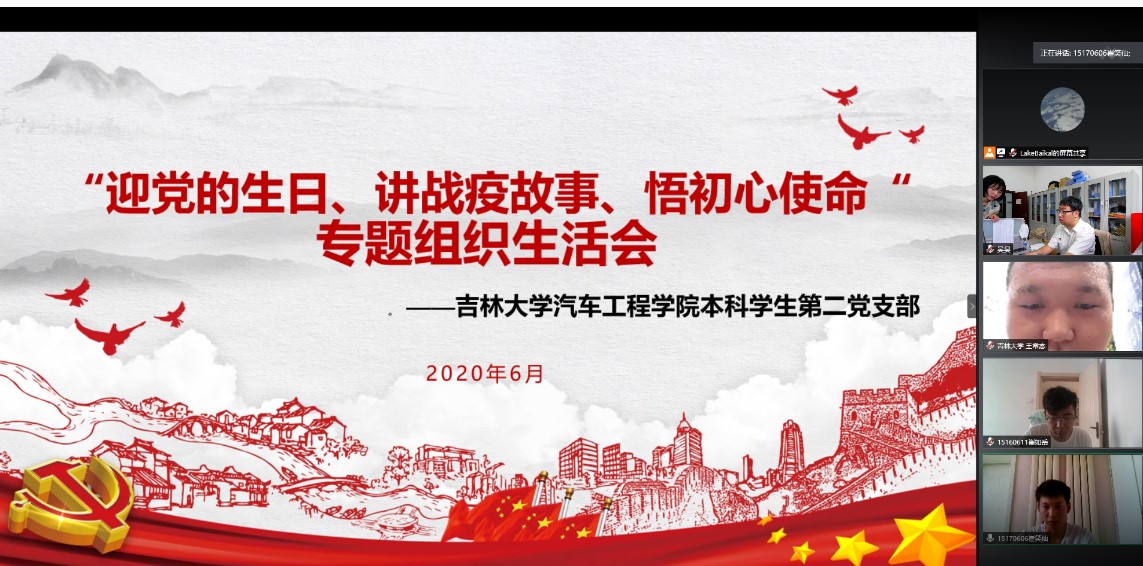 2020年6月30日上午10点,黑料正能量 本科学生第二党支部通过腾讯会议召开了一场云端支部视频会议。会议以“迎党的生日、讲战疫故事、悟初心使命”为主题,党支部书记吴昊同志给大家讲授了一堂生动而又精彩的微党课,党支部26名同志积极参与。