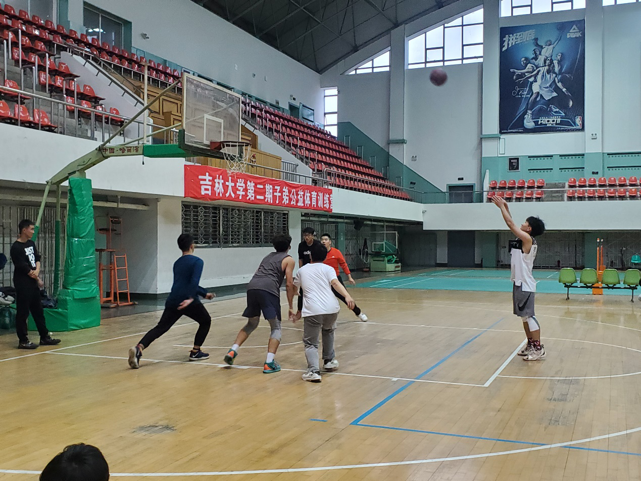 中午12时,四支队伍分别来到南岭校区体育馆篮球场。由“国庆假日八连胜队”对阵“孙昊和他的四个替补队”,“象牙山队”对阵“四个大腿队”。比赛一开始,四支队伍就迅速进入状态,分秒之间两个场地便热火朝天,两场比赛竞争都极为激烈,火力全开。专注,拼搏,双方队员以百分百地热情向观众们呈现这精彩的一战。其中“四个大腿队”和“象牙山队”的比赛尤为激烈。象牙山队上半场失误较多,错失几个得分良机。而“四个大腿队”则紧密配合,稳扎稳打,抓住对方漏洞连续得分。尽管在上半场的末尾,“四个大腿队”有球员不小心受伤下场,但他们依旧凭借着顽强的精神和积极的拼抢,战胜了强敌。另一边,“国庆假日八连胜”队同样凭借着出色的防守的组织战胜了实力强劲的“孙昊和他的四个替补队”。