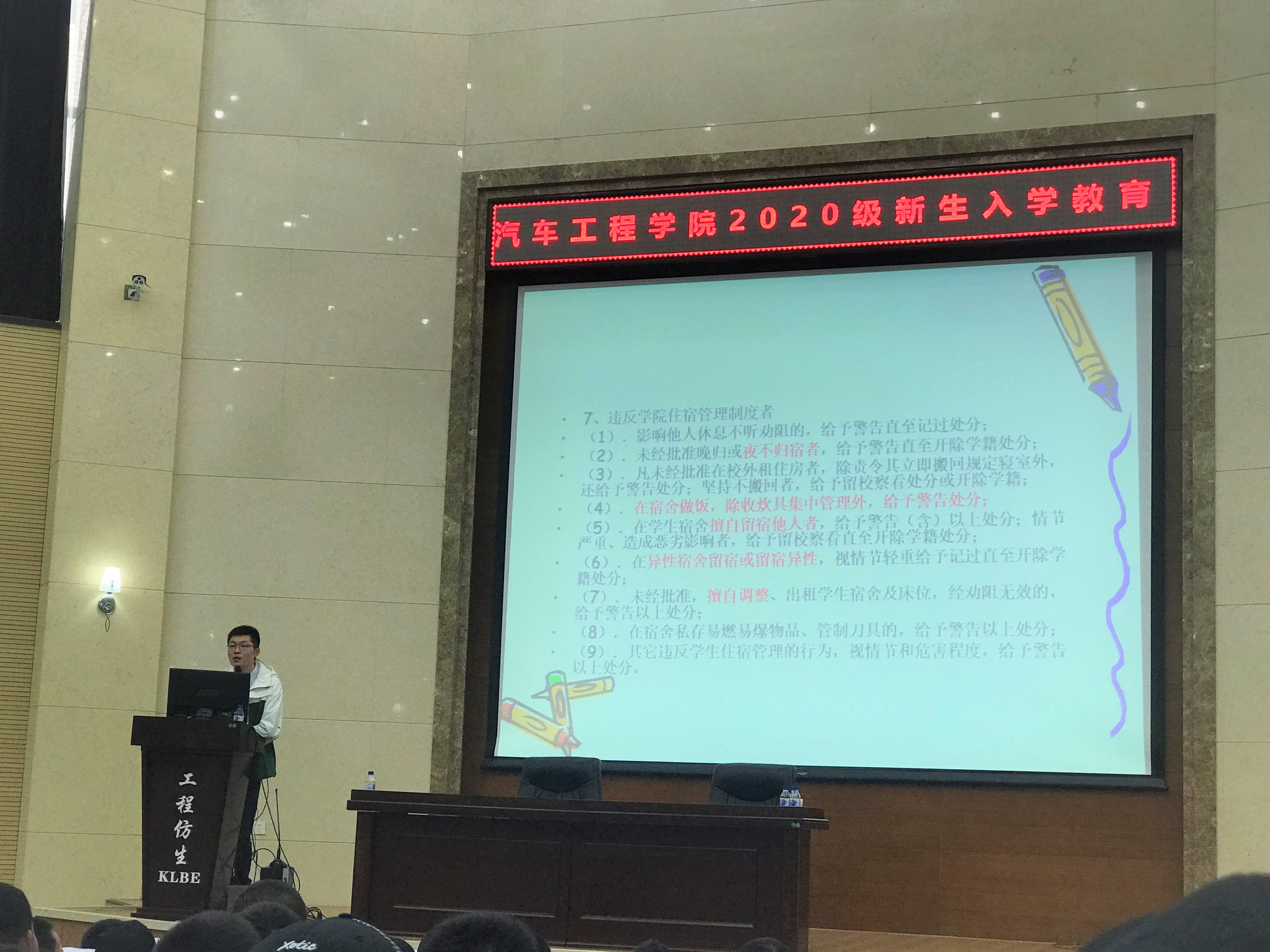 为帮助新同学了解大黑料正能量 园生活,10月8日下午3点,黑料正能量 于仿生报告厅召开了2020级新生校规校纪教育大会。2020级辅导员李季老师担任主讲人。