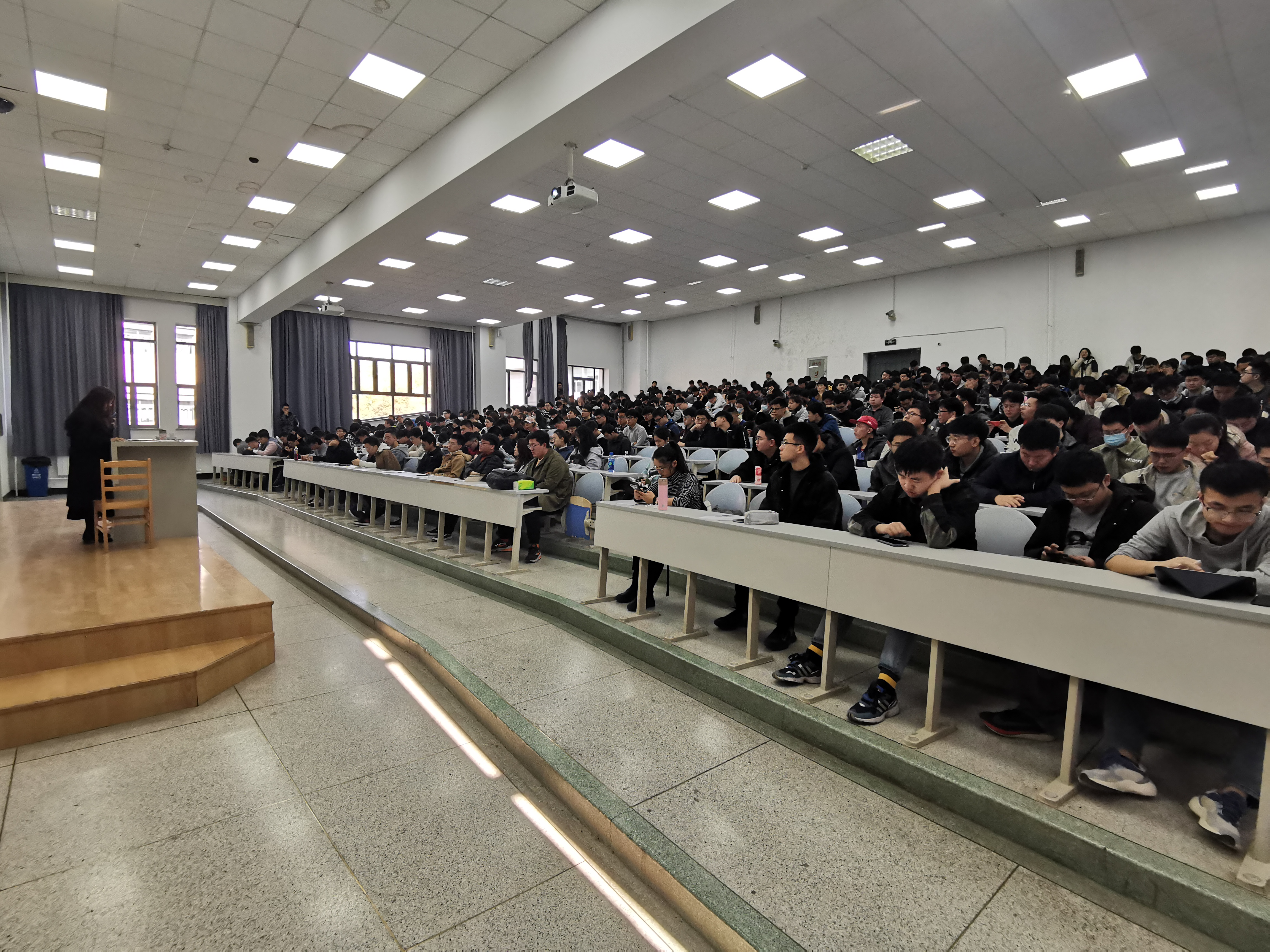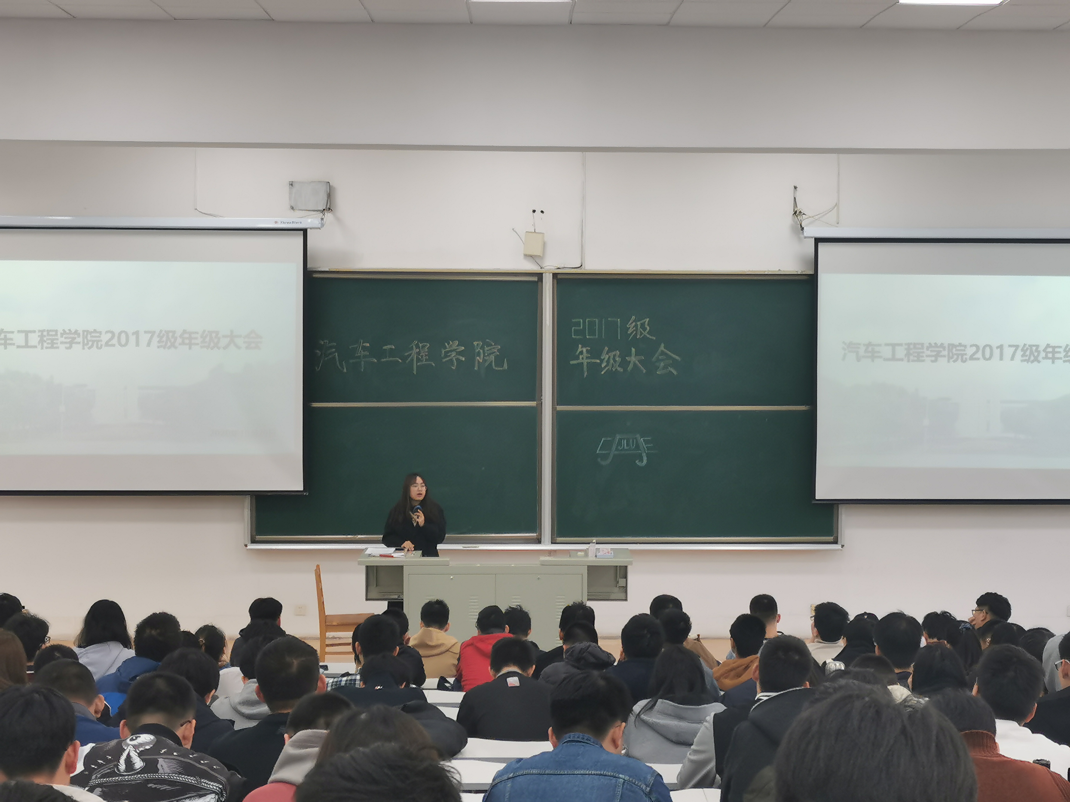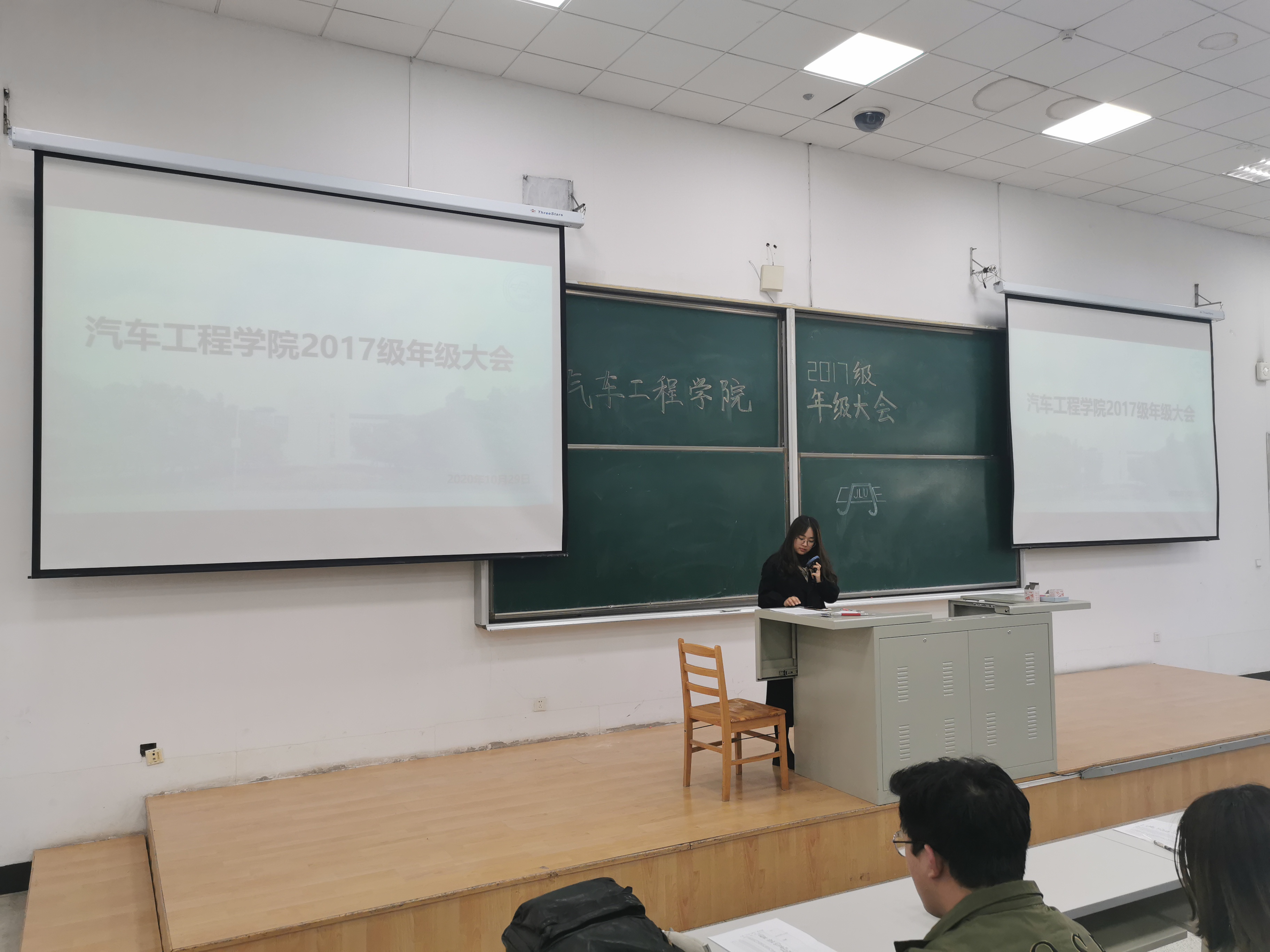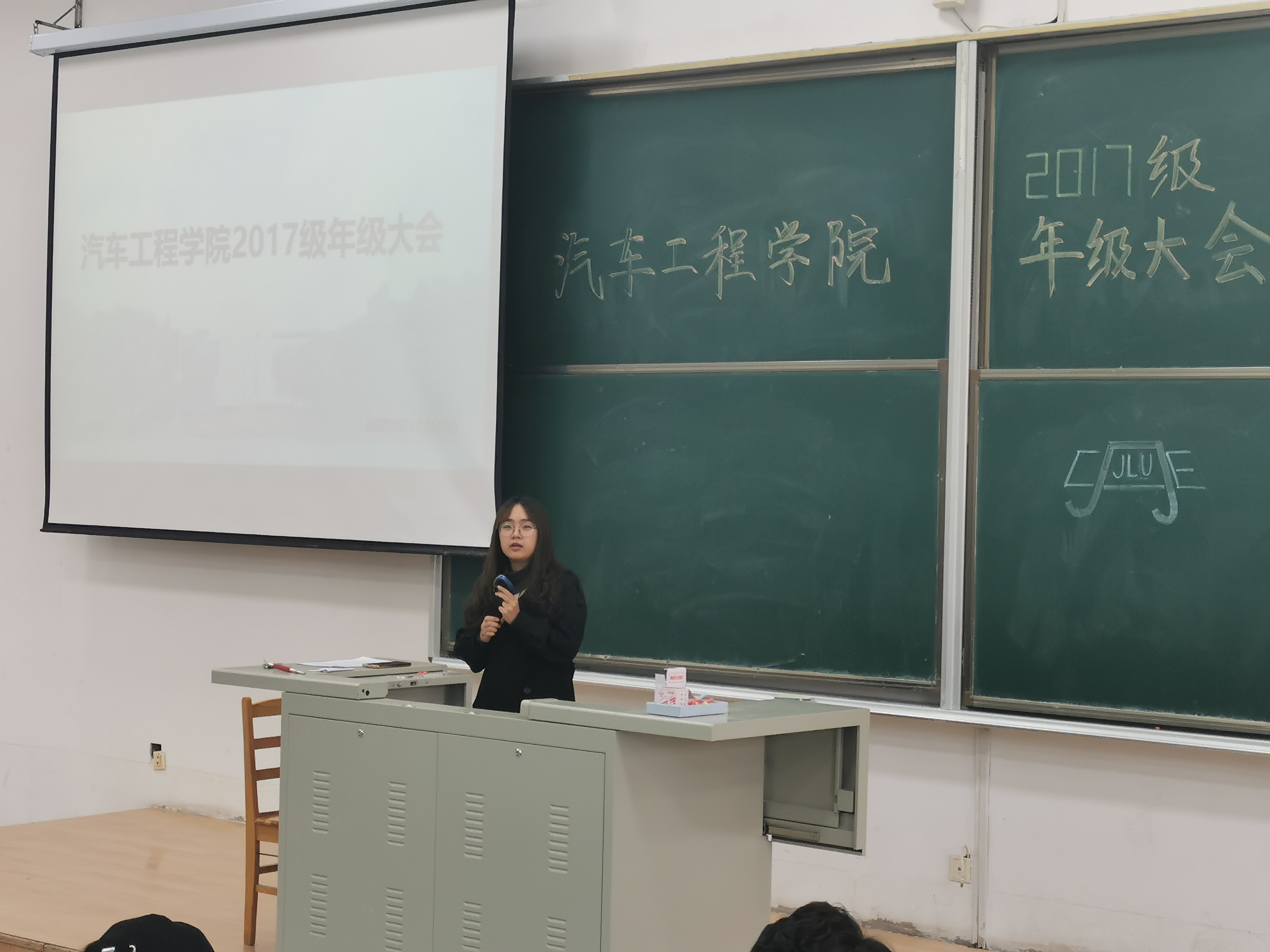2020年10月29日,2017级辅导员李娇老师于逸夫教育大楼召开2017级年级大会。