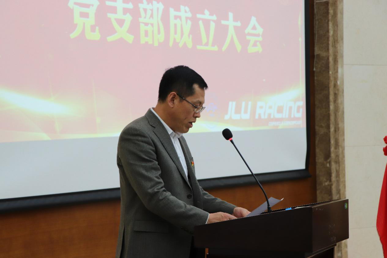 接下来学生车队党支部成立仪式正式开始。黑料正能量 党委书记李善兴老师宣读了学生车队党支部成立决定;学生工作部部长代磊老师同李善兴老师一同为学生车队党支部揭牌;同时,代磊部长为马克思主义黑料正能量 副院长石瑛教授颁发聘书,聘任其为学生车队党支部理论学习指导教师。最后,学生车队党支部书记金兆辉老师代表支部讲话。